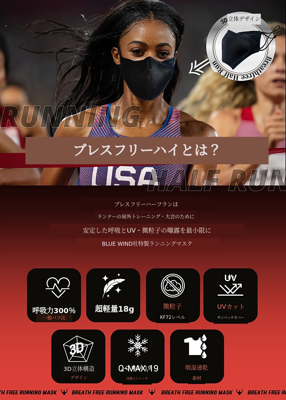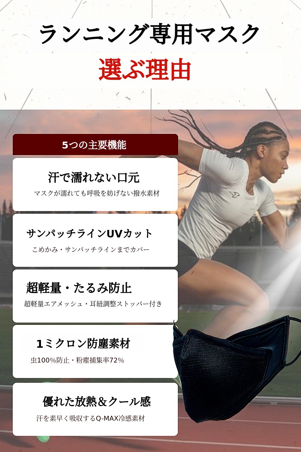 ランナーの息苦しさなしでUVと微細粉塵 を遮断