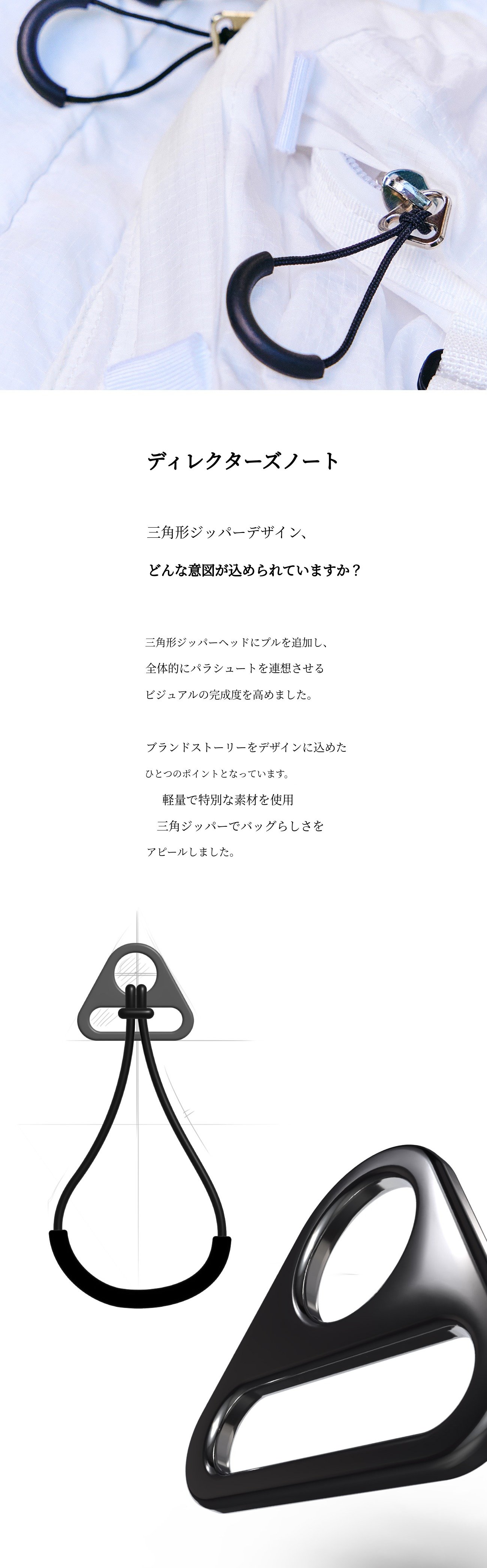 パラシュートのように軽く、メンブレンの機能性も兼ね備え、機能だけでなく感性も大切にした