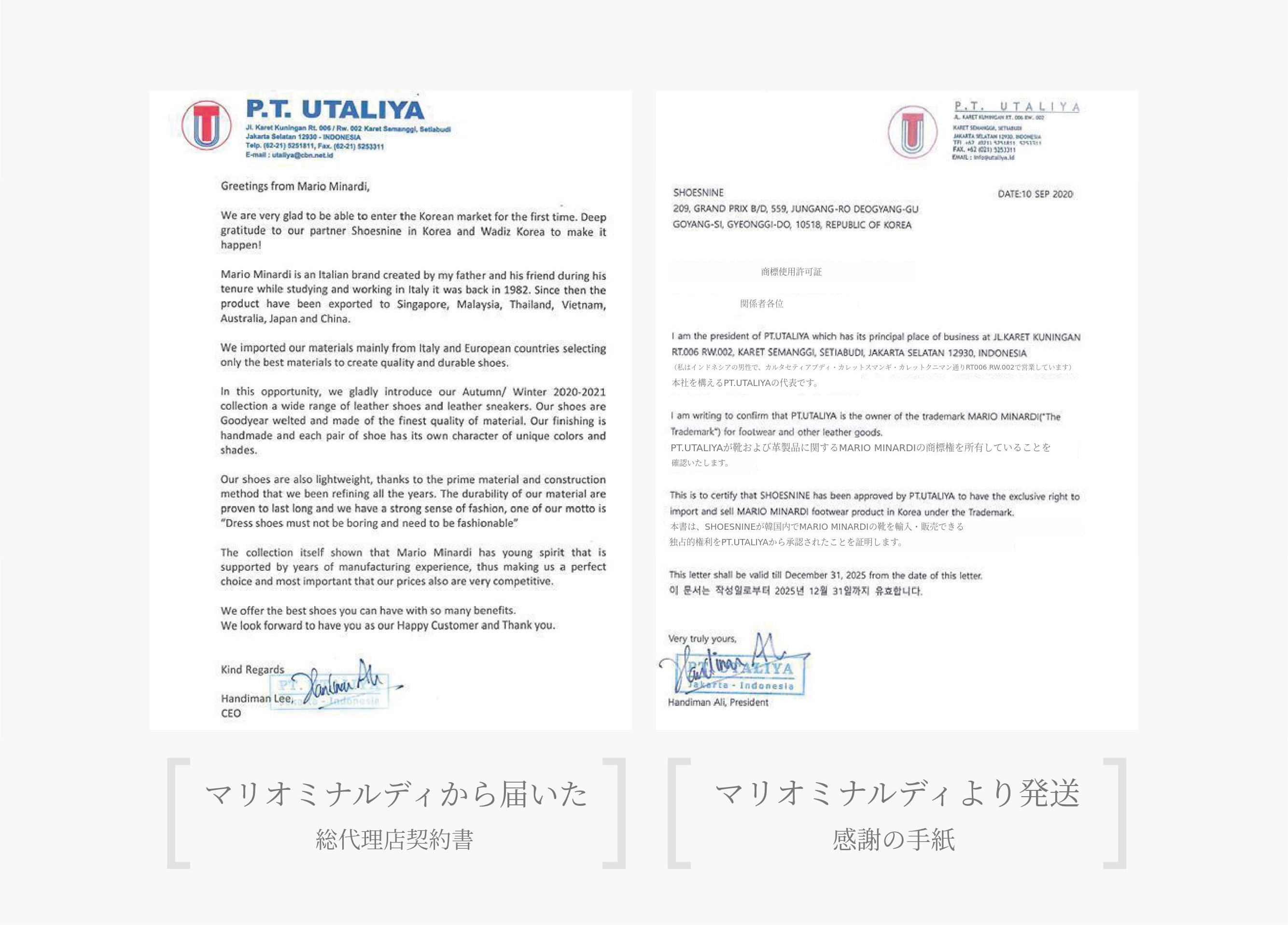 MARIO MINARDI社と独占契約を結び、韓国人の足型に合うラストを開発・適用し、洗練されたデザインと快適な履き心地を感じられる高級ハンドメイドシューズを供給するために2017年6月に設立されました。本社とのパートナーシップが良好で信頼構築も完了し、国内で共同でマリオミナルディ商標を登録する成果を上げました。