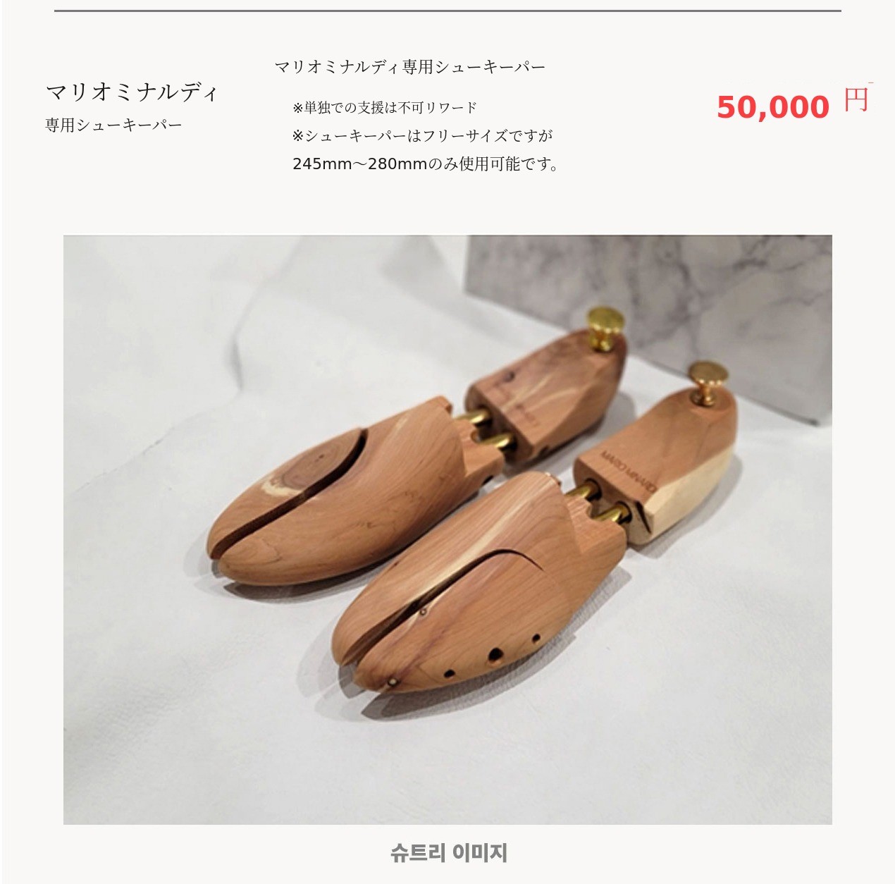 交換用の在庫は一部用意していますが、限られているため即時交換が難しい場合があります。マリオミナルディのリワードファンディングが初めてでサイズ確認が必要な場合、マリオミナルディのサイズ確認ができるフィッティングサンプルを無料でお送りできます。 フィッティングサンプルのご依頼も上記のカカオトークチャンネル マリオミナルディでお申し込みください。サイズが合わない場合、マリオミナルディはサポーター様の立場でご不便を解消できるよう最大限サポートいたしますので、ご不便な点があればいつでもご連絡ください。(海外サポーターの場合、フィッティングサンプルサービスはご利用いただけません)