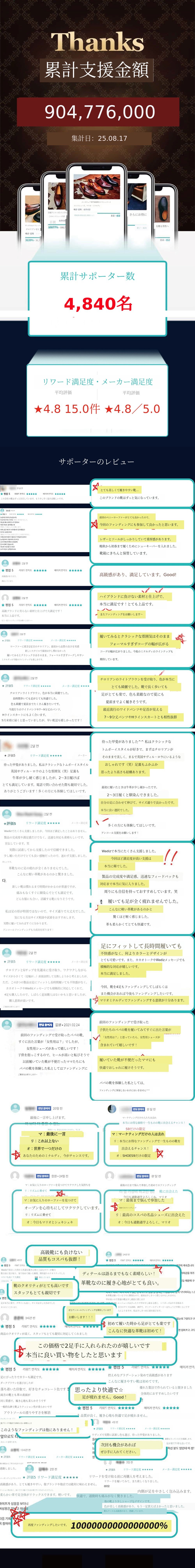 当社で開発した製品はほとんどがwadizで初めて発売 を行い、サポーターの皆様からいただいた多くの応援や励まし、そしてアドバイスを通じて、さらに製品のクオリティを高めるきっかけとなりました。ダブルモンクやスエードローファーなど、サポーターのご要望でローンチした製品もありました。Wadizでサポーターの皆様と一緒に新製品を開発し、ローンチしながら、新しいリワードを通じて楽しい会話を交わすような幸せな時間を過ごすことができました。