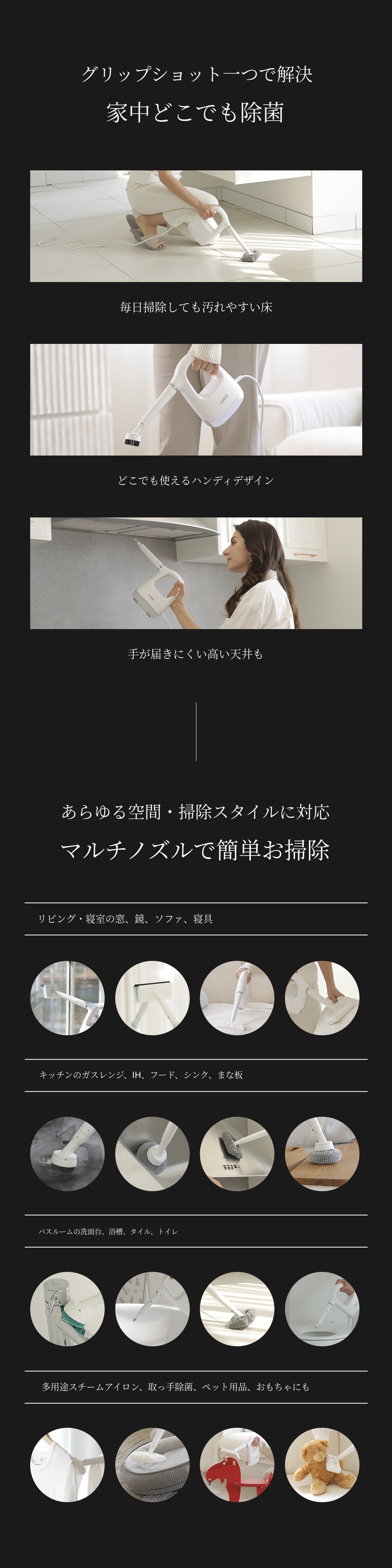 高温スチームで床はもちろん、細菌まで一度に!