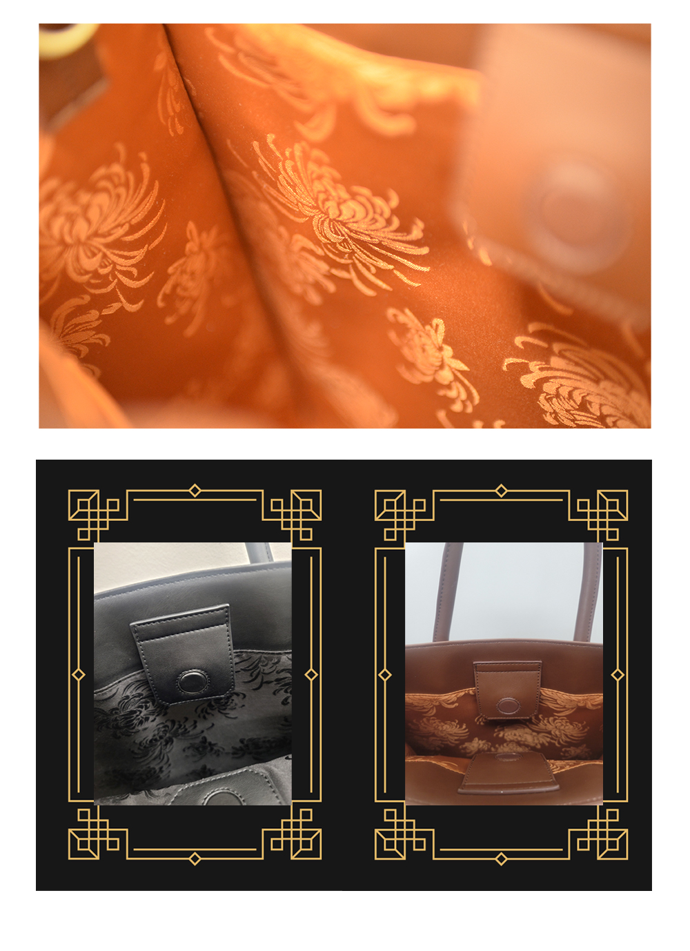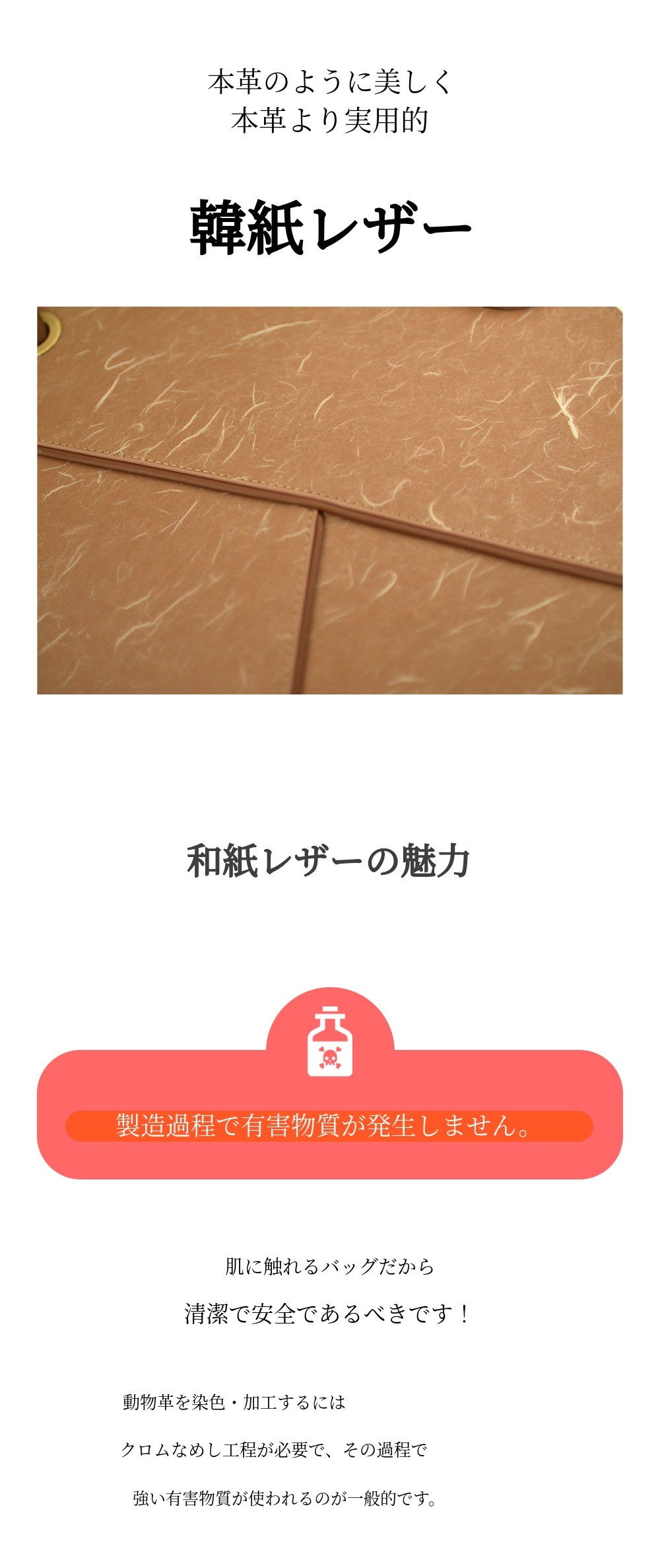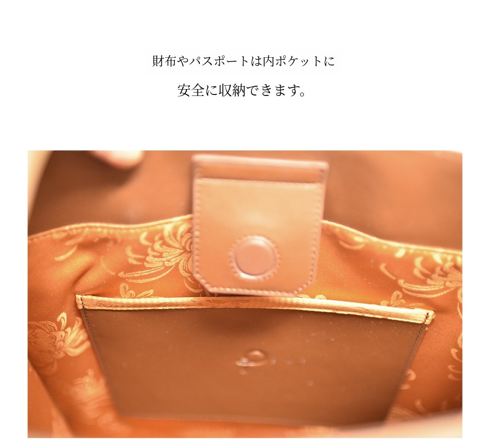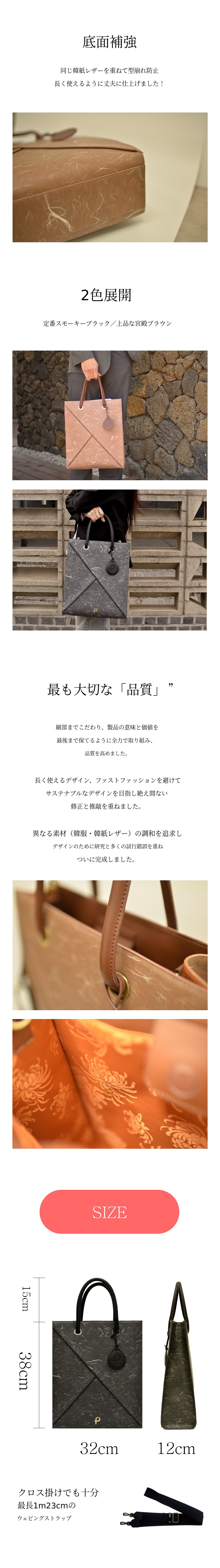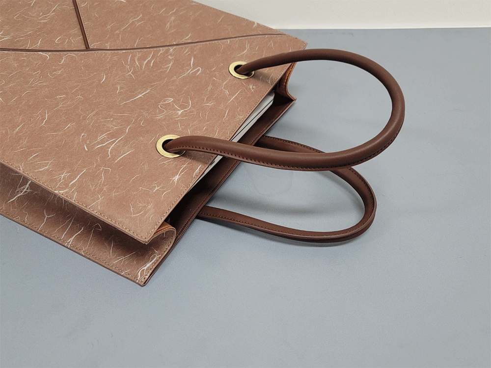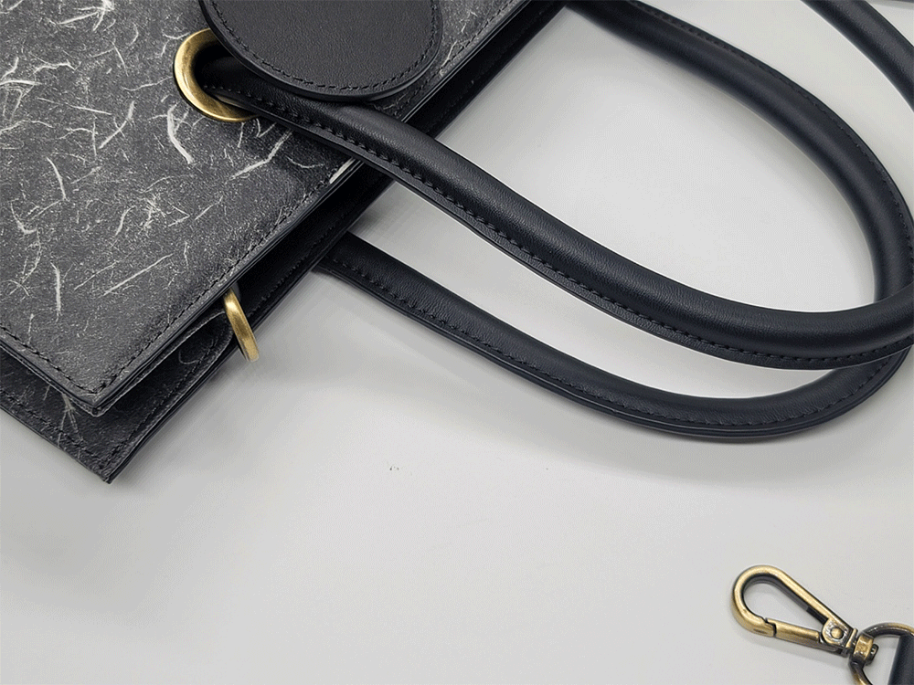韓紙レザートートバッグに最もよく合うヤンダンを選定し、襟のデザインと柔らかいレザーに最高の調和を成す裏地として製作しました。