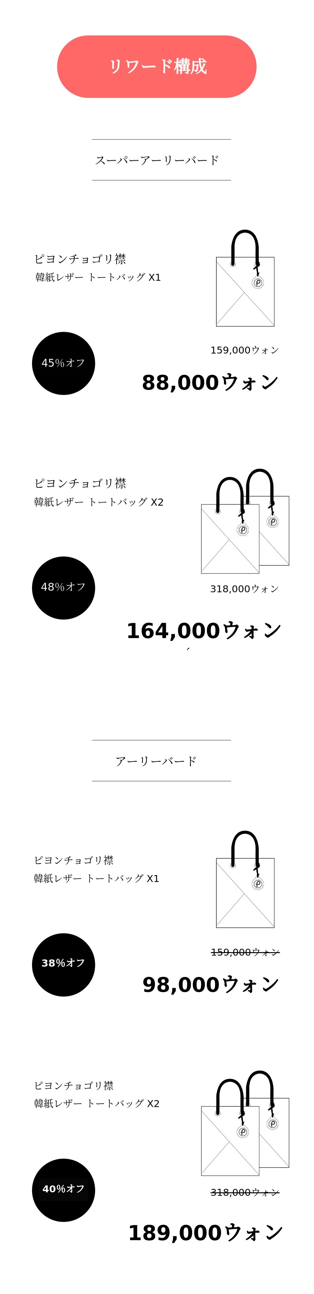 - 離島・山間部の場合、追加の宅配料6,000ウォンが発生し、プロジェクト終了後に個別にご案内いたします。