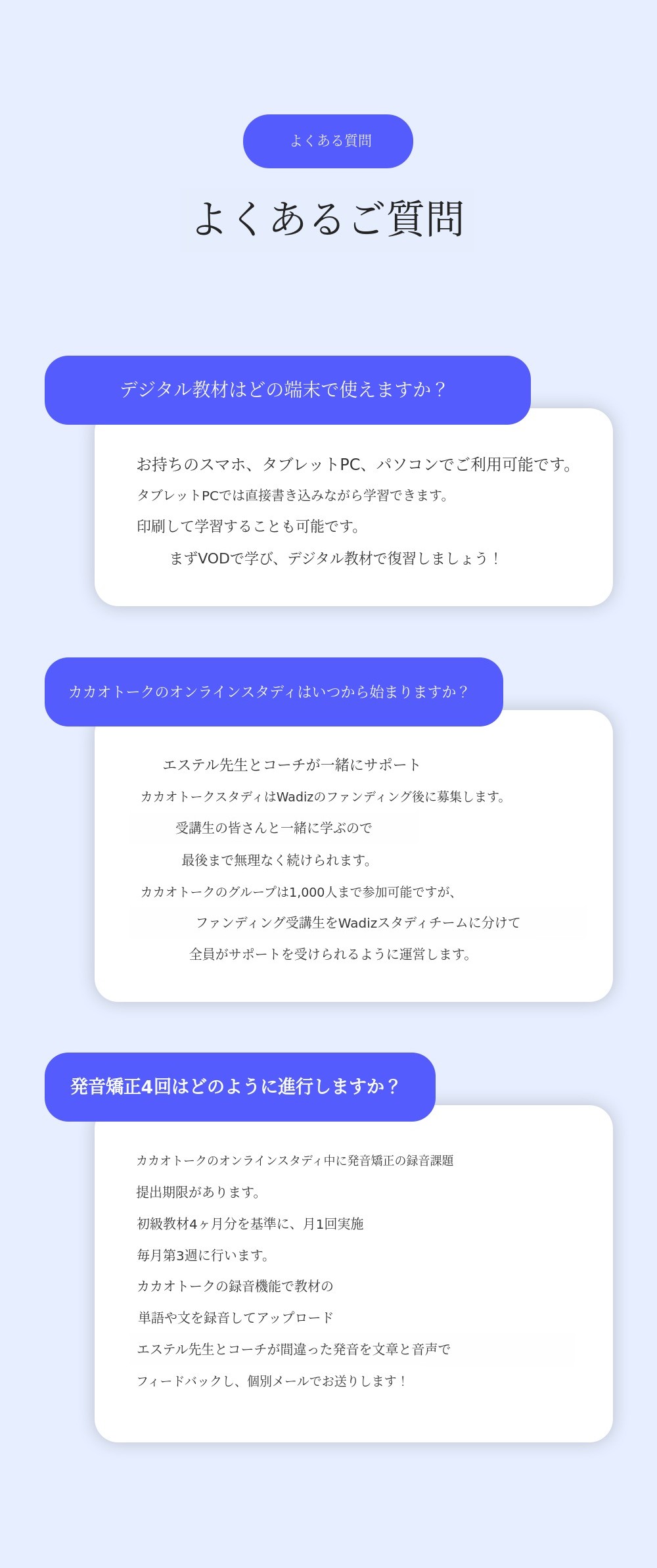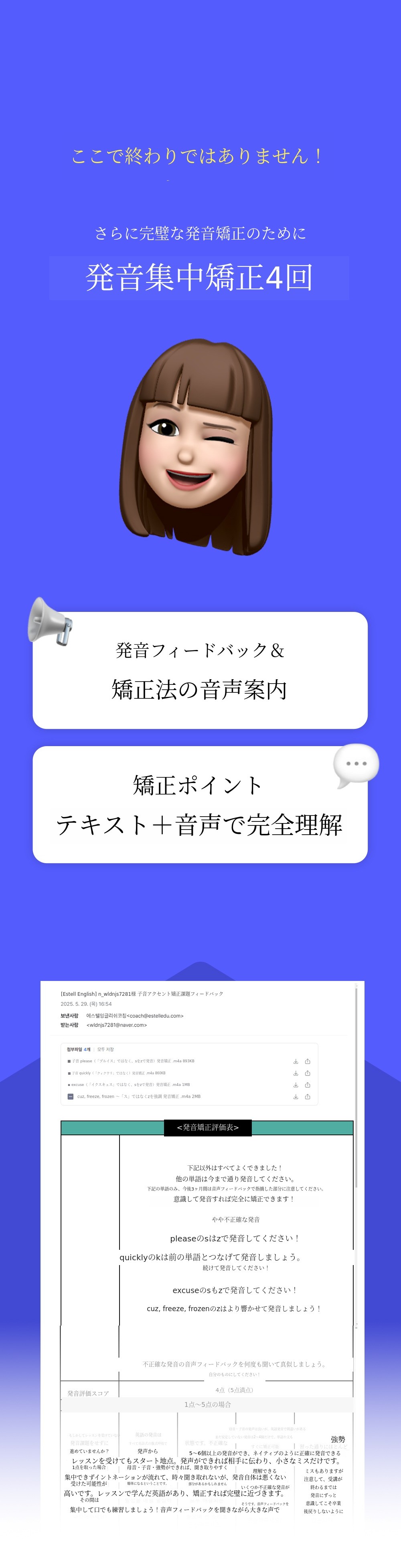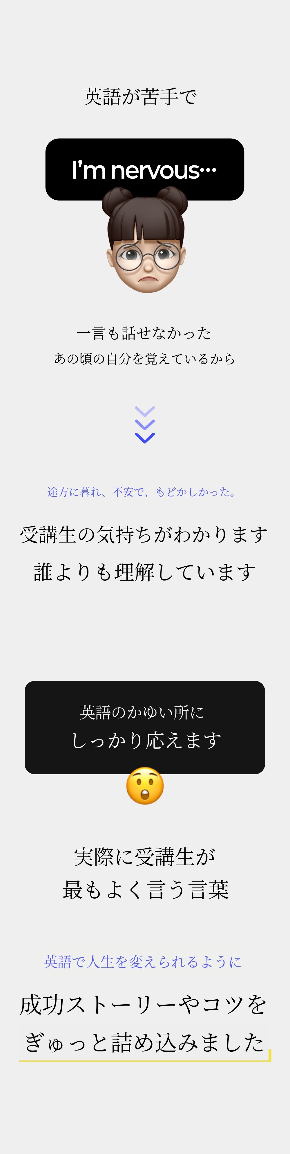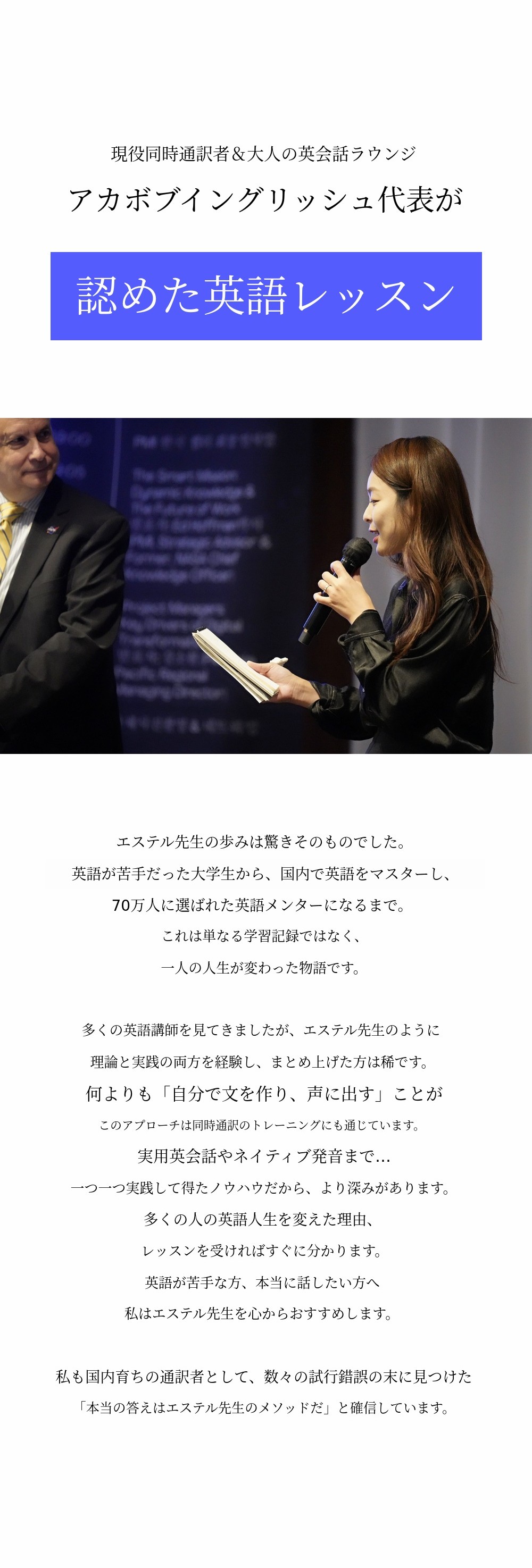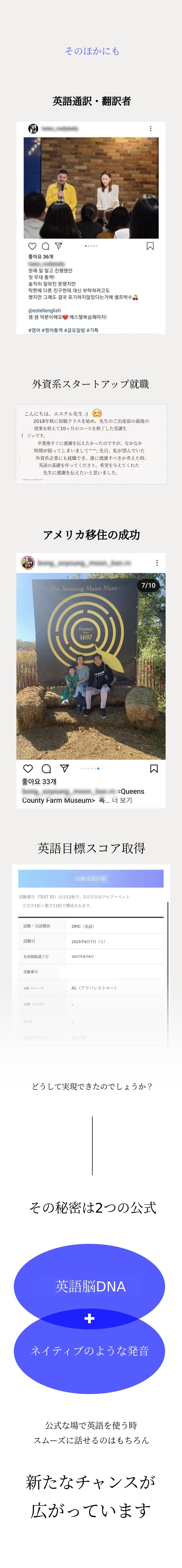 エステル先生のスピーキング授業だけ受けたのに英語リスニングが上達した、勉強していないのにTOEICの点数が上がった、準備していないのに英語面接に合格したなどの感想をいただきます。だから私の授業を基盤に英語の他の分野も簡単にできるよう、ファンディングを通じて連携した講座をたくさん作っています。