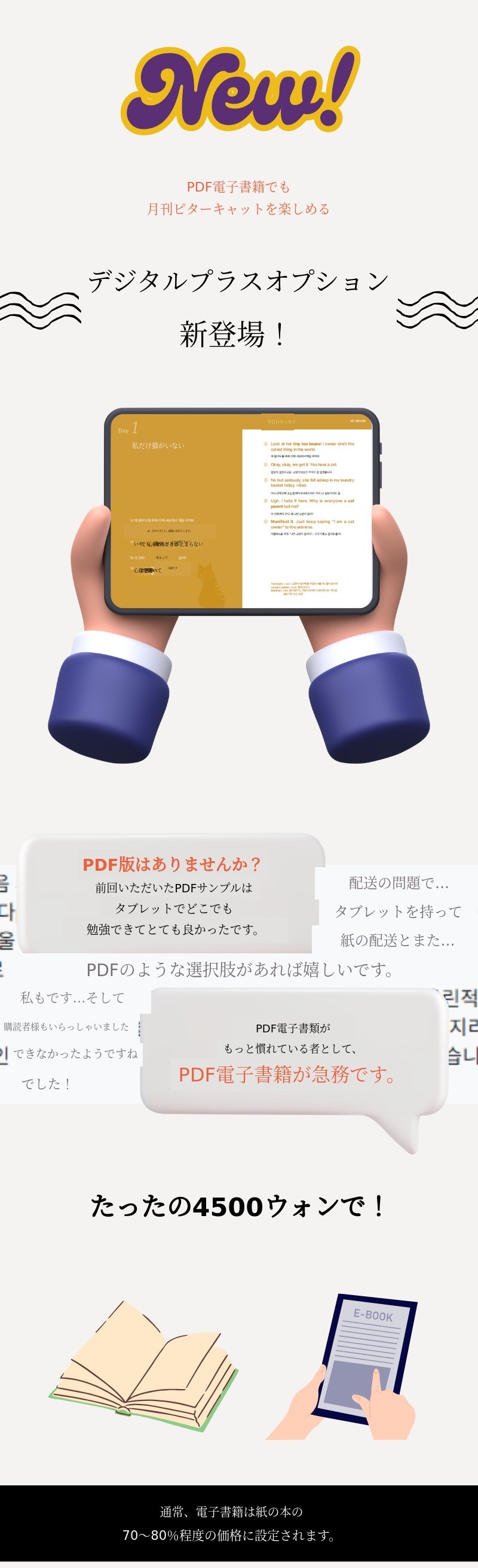 その感謝の気持ちを込めて、これまで購読者の皆様から多くご要望いただいたPDF本サービス(価格も大幅に下げて1冊4500ウォンでご用意しました????)とともに戻ってきました。
