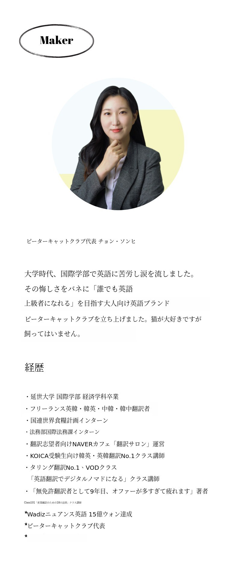 Wadiz英語書籍累計ファンディング額1位の神話*、ピーターキャットクラブの代表チョン・ソンヒです。 :)