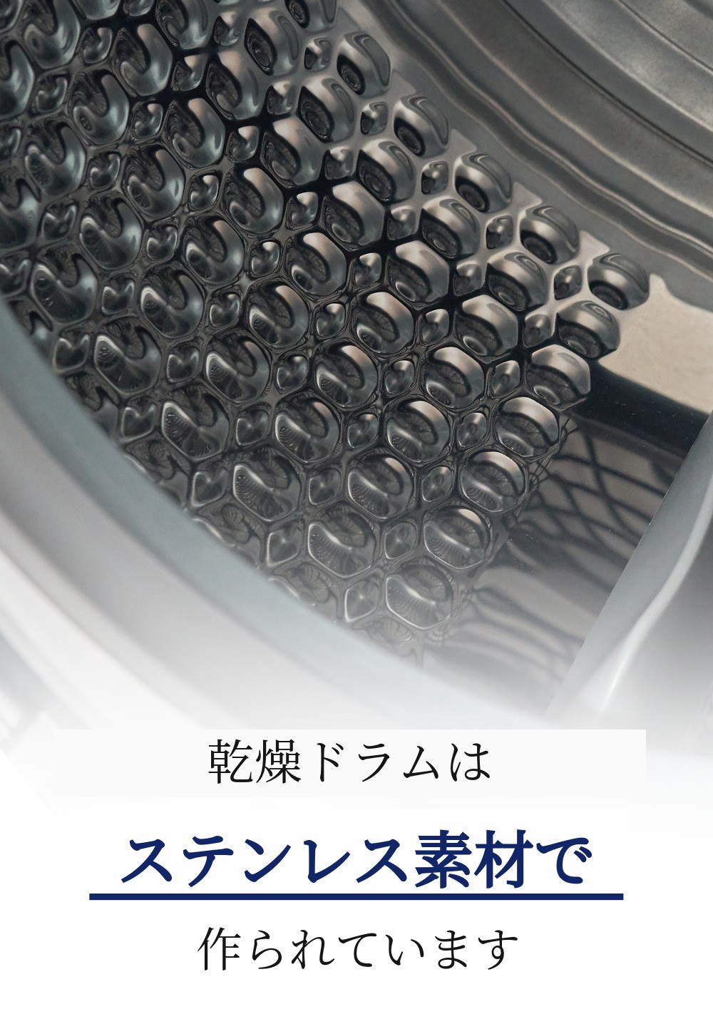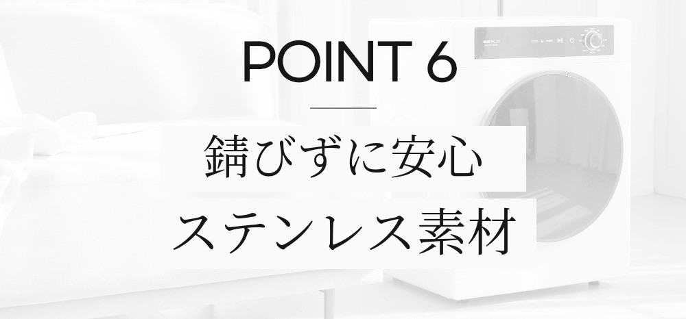 錆びない素材で、水を頻繁に使うキッチン用品や生活用品に使われるプレミアム素材です。水分を多く含んだ衣類を乾かす必要があるため、ドラム内部の素材は水に強くなければなりません。そのため、プレミアムステンレス素材を使用し、腐食や汚れなく乾燥できるようにしました。