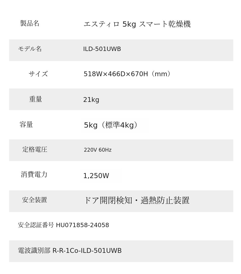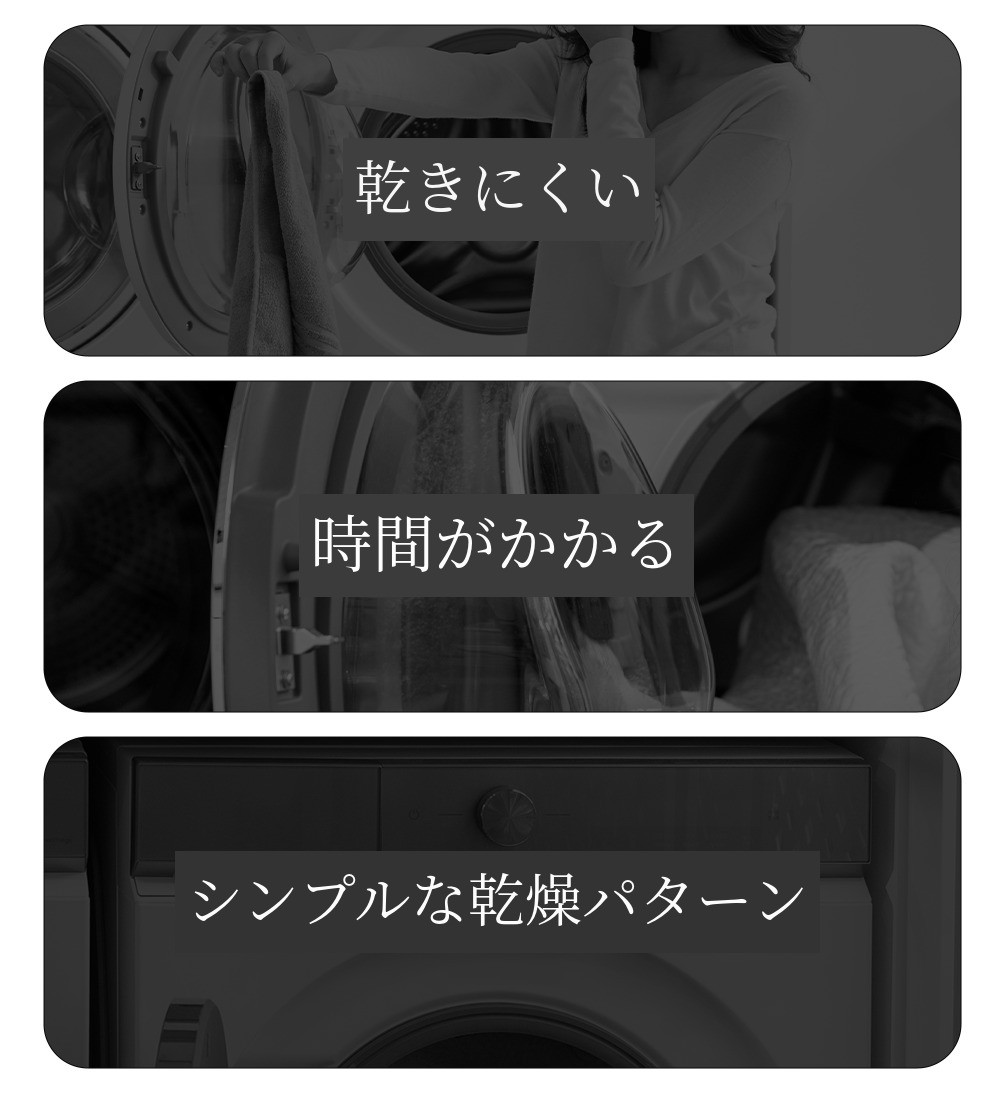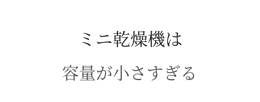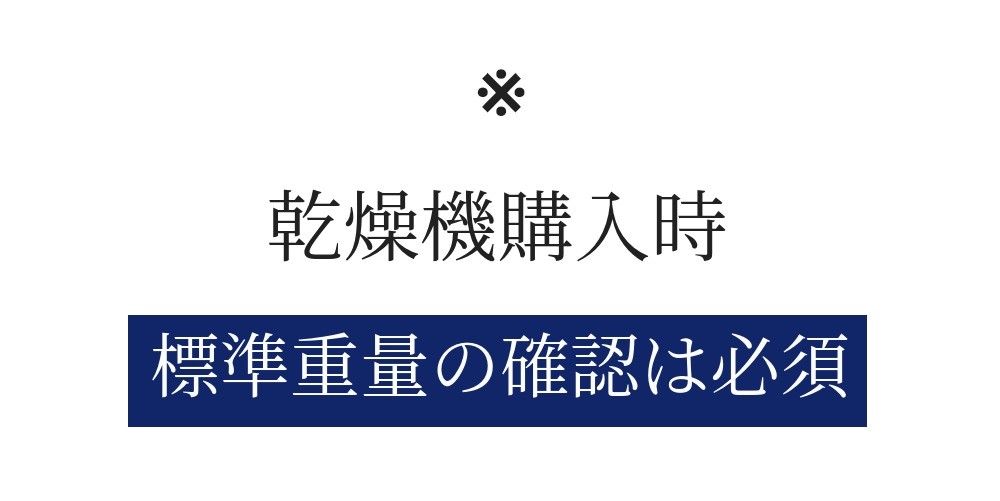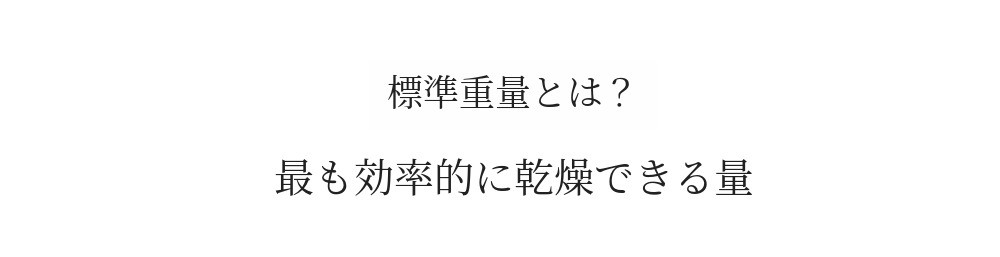 標準重量と最大重量の差が大きいと、最大容量で使用する際に時間がよりかかり、乾きが不十分になる現象が発生します。