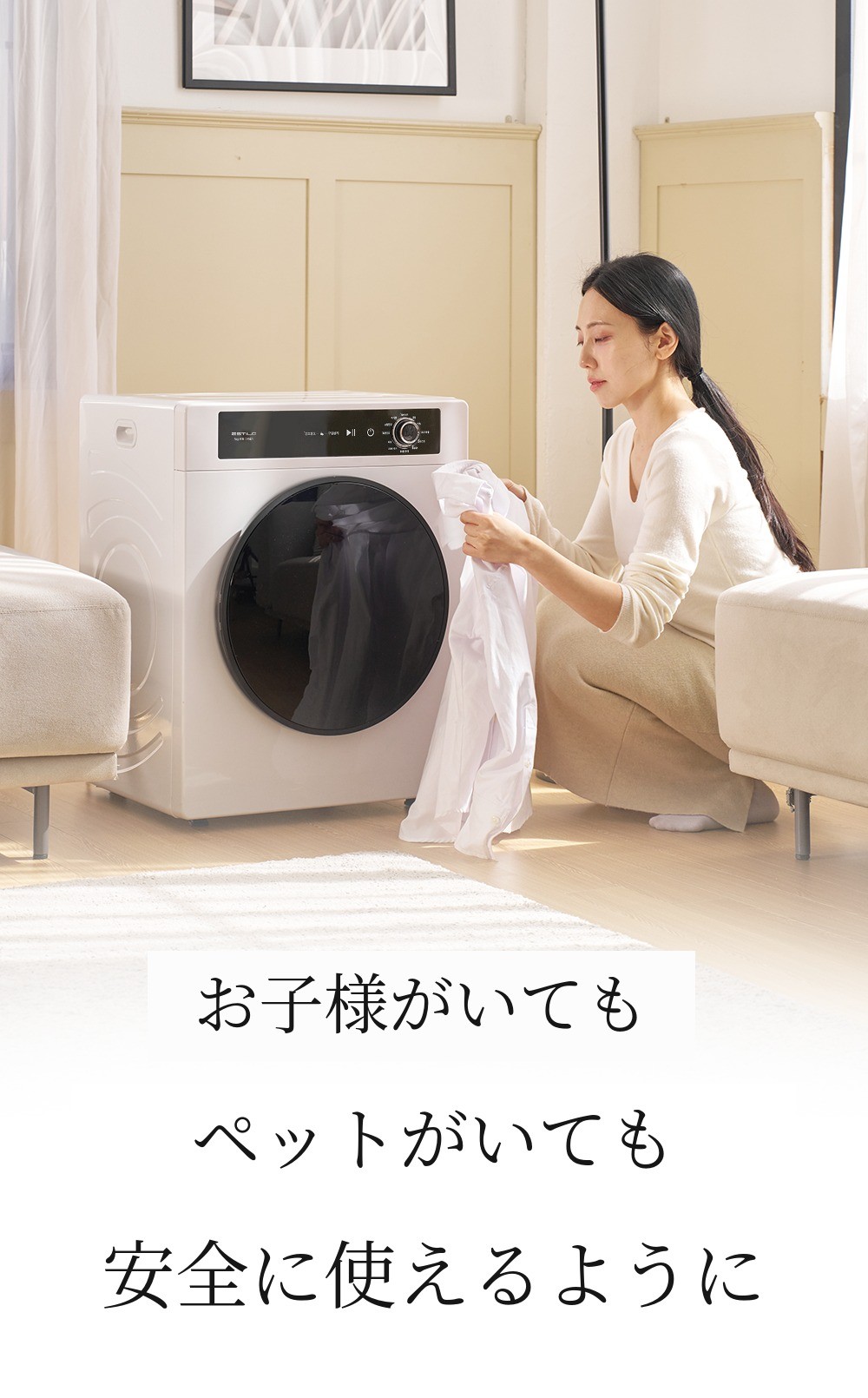 乾燥機が稼働中にドアを開けると自動的に停止し、安全です。