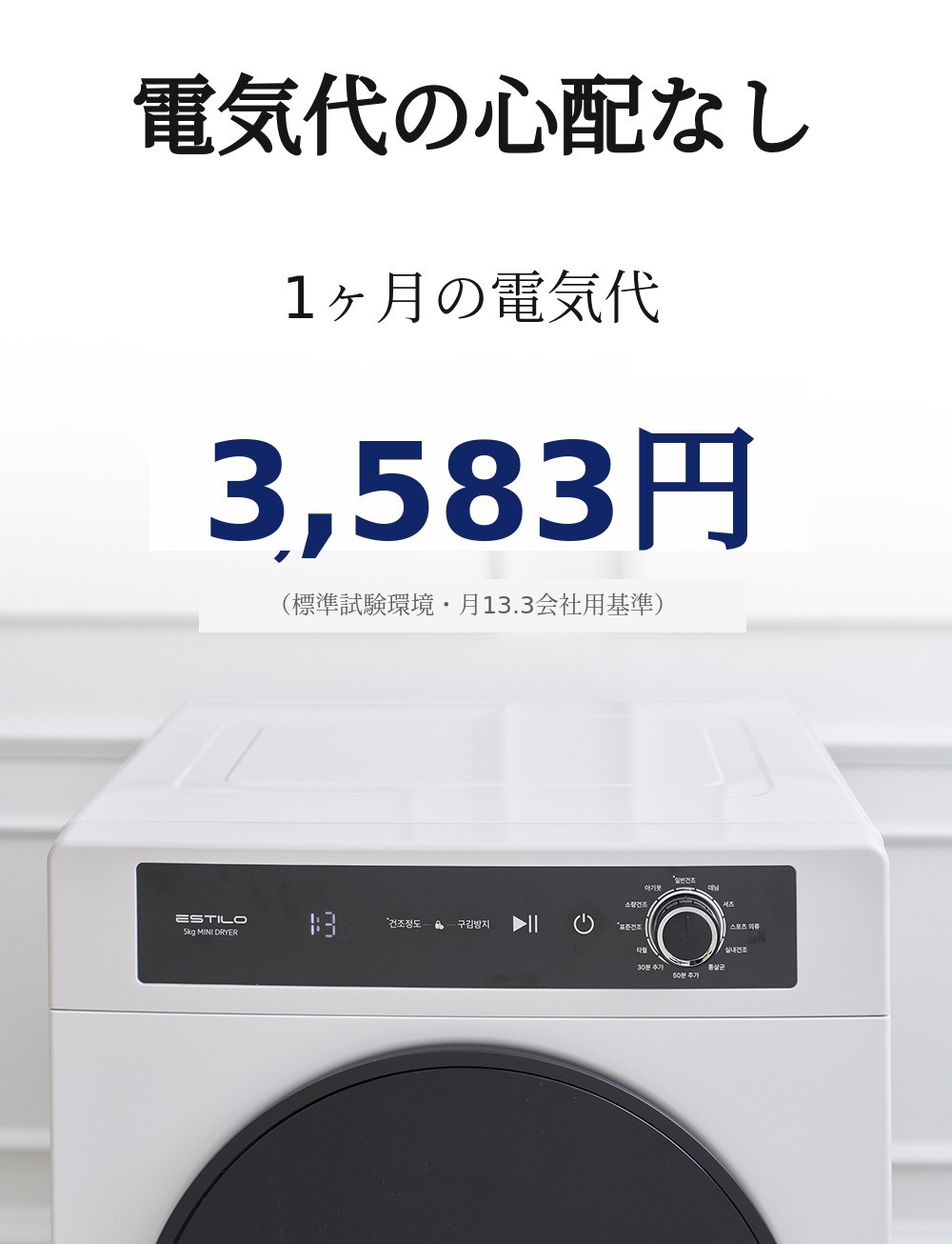 PTCヒーターは一定温度に達するとそれ以上電気を消費しないため、消費電力も低く電気代の節約にも役立ちます。だから1ヶ月の電気代 3,583ウォン(標準試験環境で月13.3回使用基準) コインランドリーと比べてはるかに安い価格!