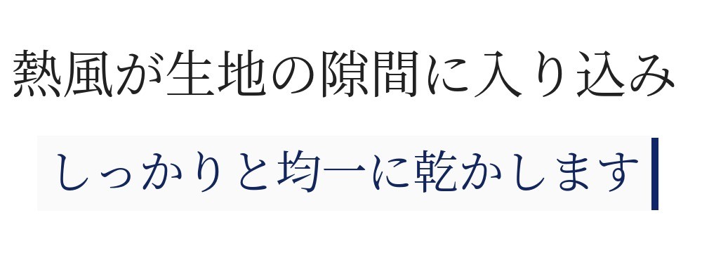 熱い空気が衣類の隙間に浸透し、均一に乾燥させ