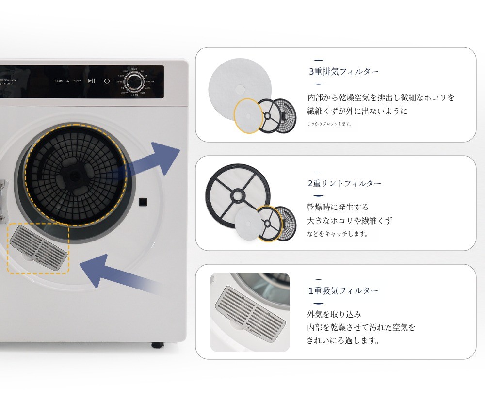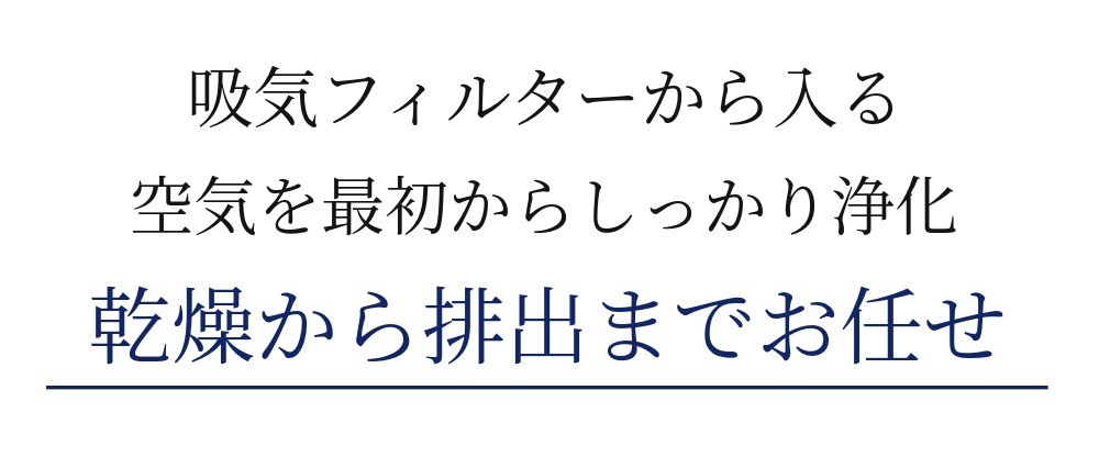 乾燥過程で内部に入る空気もきれいにフィルタリングし、乾燥機の外に排出される空気まできれいにフィルタリングされます。