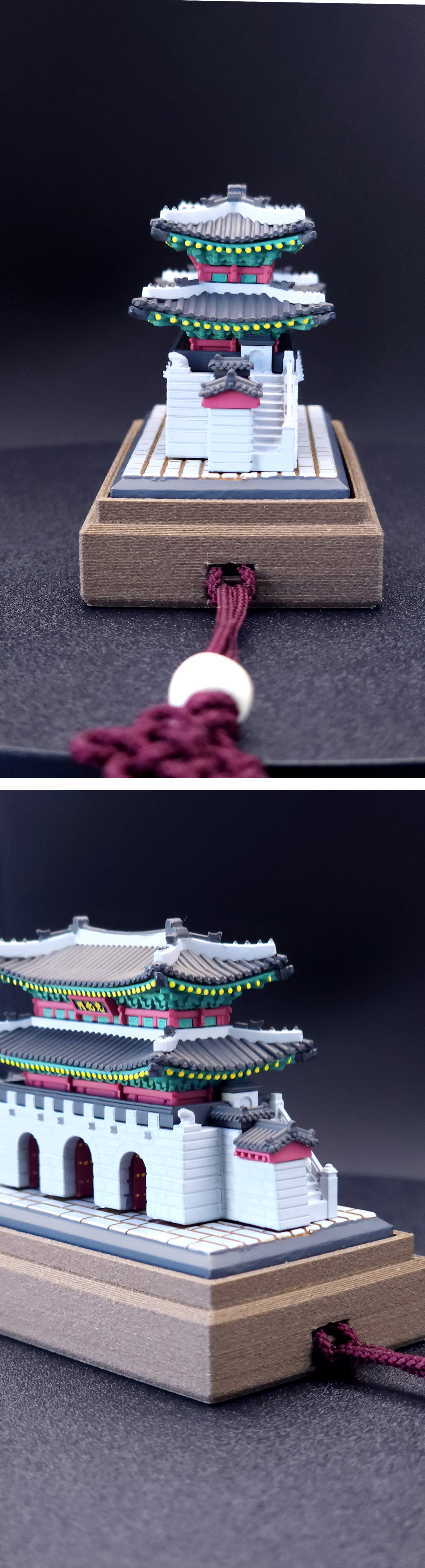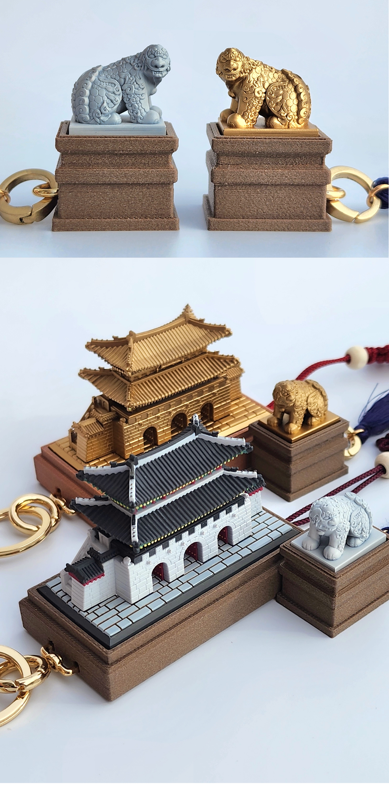 한국을 대표하는 두 상징을 키보드 키캡의 감각으로 담은 키링,