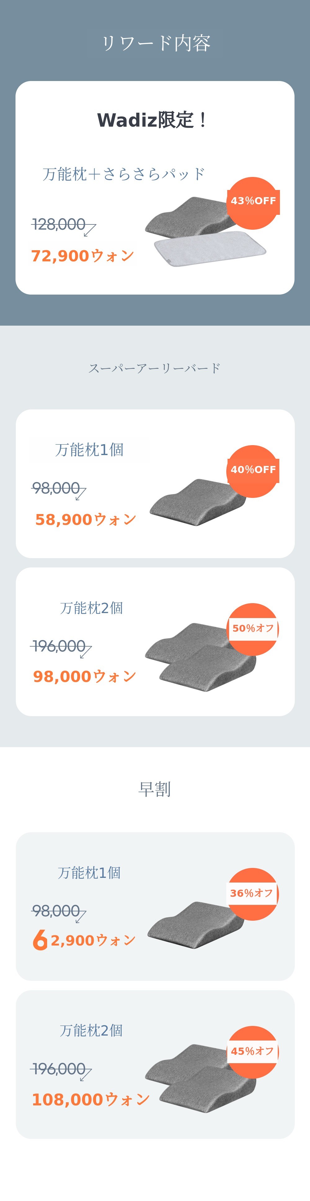 睡眠基本権を完全に提供するためには、睡眠環境を含む睡眠五感を満足させる必要があり、そのための製品開発は今日も続いています。ファンディングで集まった資金は、今後睡眠基本権を完成させる製品ラインナップの開発に使われ、完全な睡眠基本権を現実化できるように使用される予定です。 - ファンディングリワード案内事項
