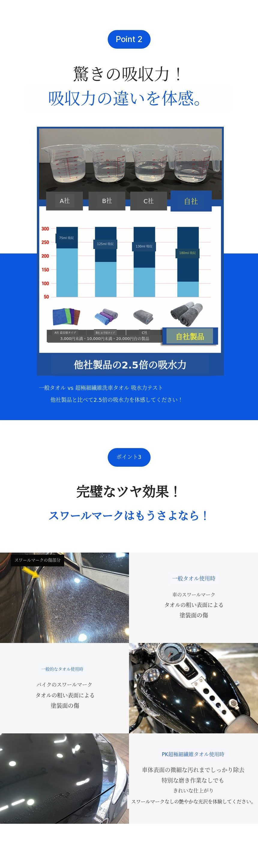 1. 🚗 超極細プレミアム光沢タオル - ペンタゴン構造と混合繊維で優れた吸収力と仕上げ力です 2. ✨ 車両とバイクの光沢ケア - キズ防止と滑らかな仕上がりで完璧な光沢効果です 3. 🎁 プラットフォーム限定の合理的価格 - 中間流通マージンなしのD2C方式で提供します