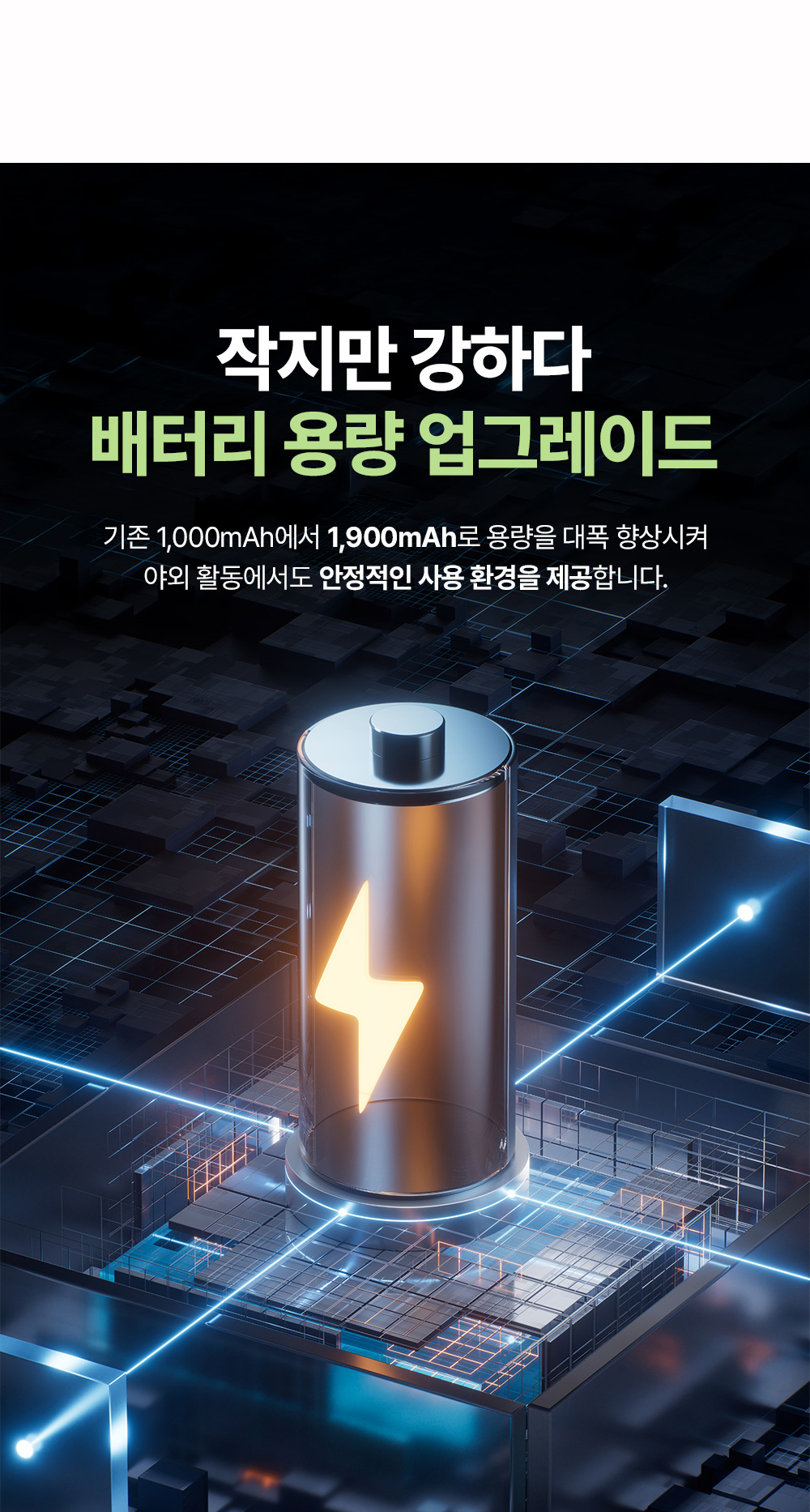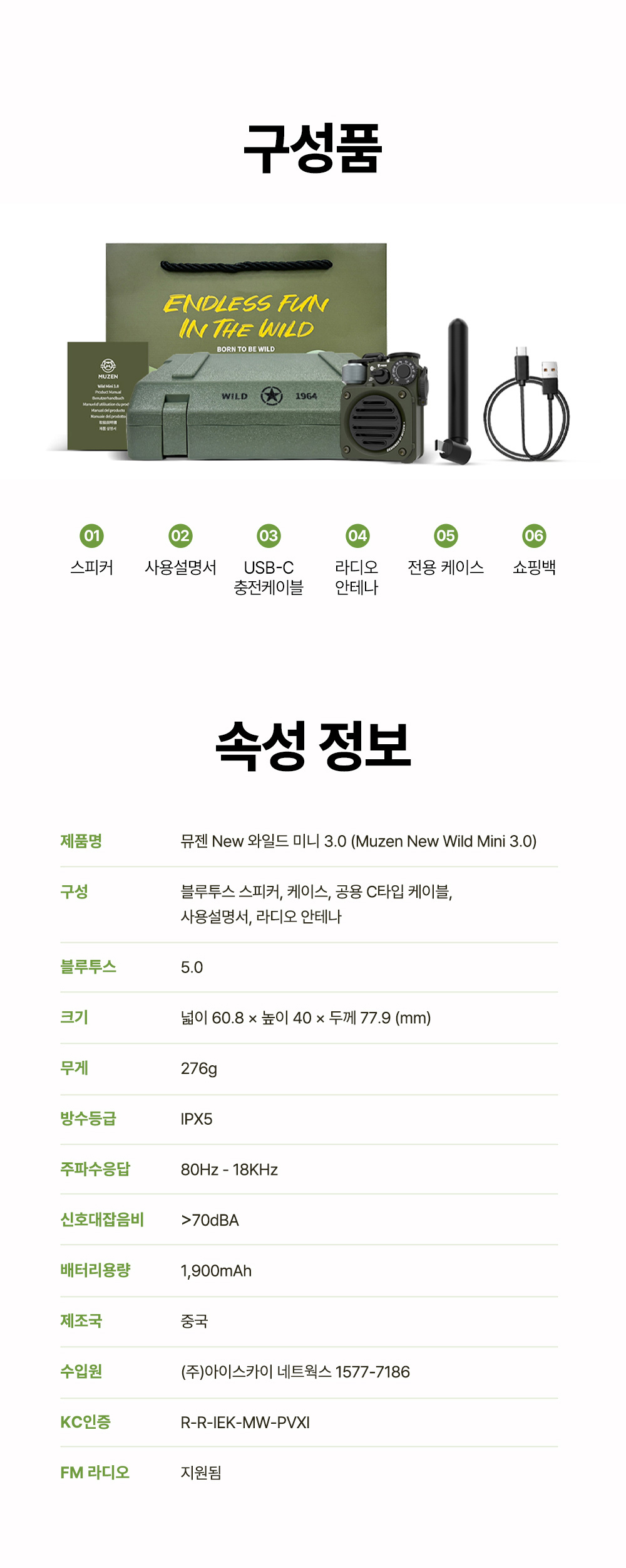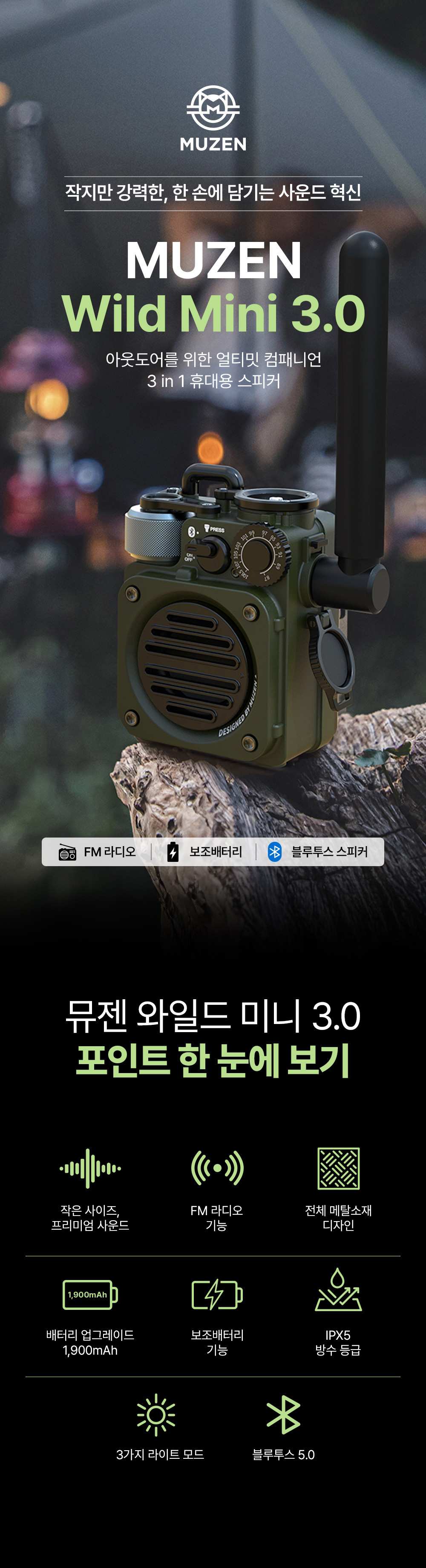 뮤젠 와일드미니 3.0의 주요 업그레이드된 부분은 많은 서포터분들께서 꾸준히 요청하신 FM 라디오 기능 탑재가 되었으며, 배터리 용량 1,000mAh → 1,900mAh 으로 대폭 향상되었습니다.