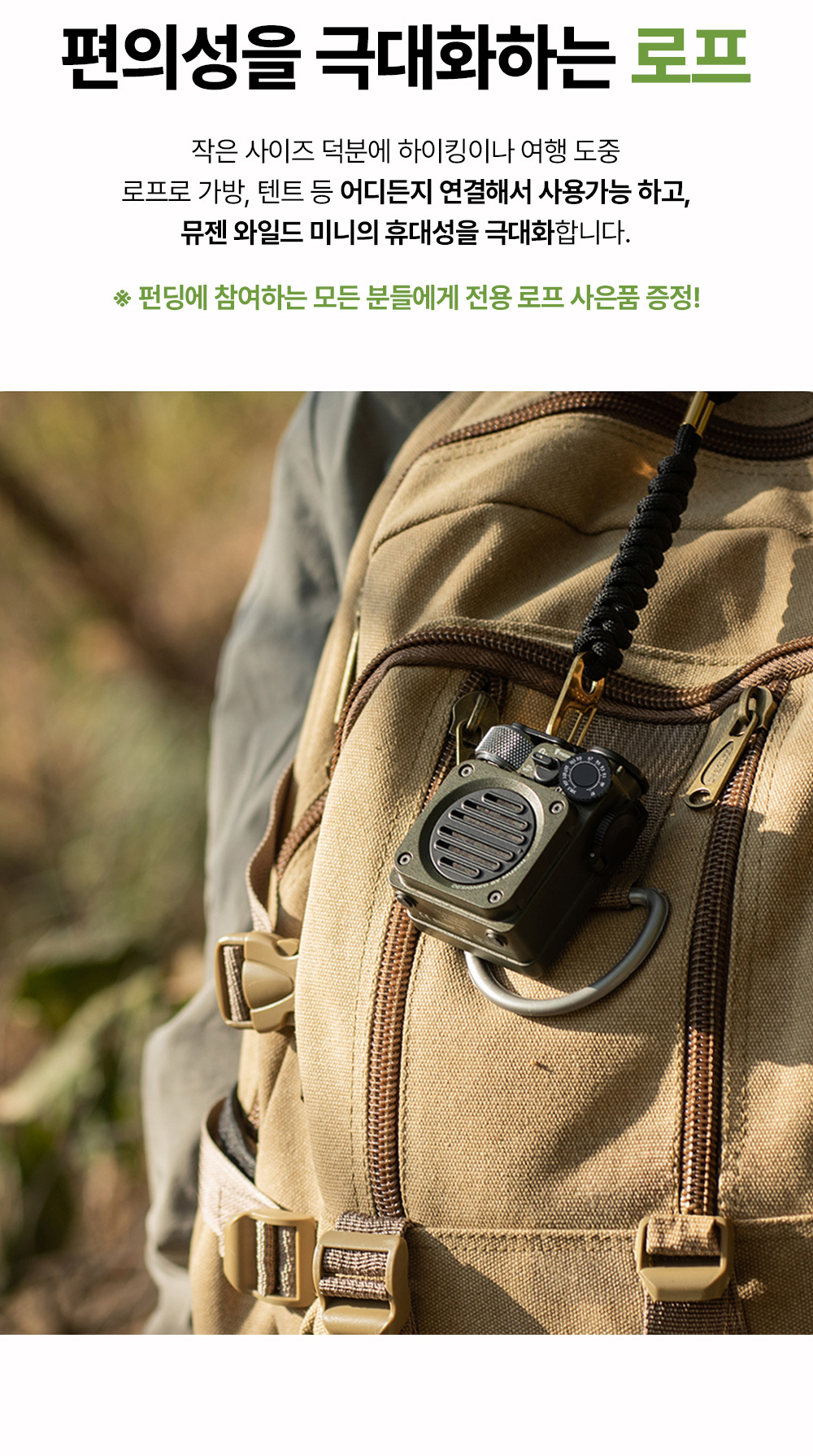 1. 🔊 MUZEN Wild Mini 3.0 ポータブルスピーカー - FMラジオとバッテリー機能を追加しました 2. 💪 頑丈なメタルボディとIPX5防水 - アウトドアに最適な防水設計です 3. 🎁 限定ストラップのプレゼント - 支援者限定の特典です