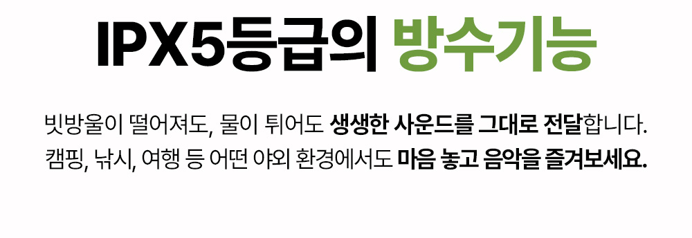 4. IPX5 등급으로, 비로부터 보호 됩니다.