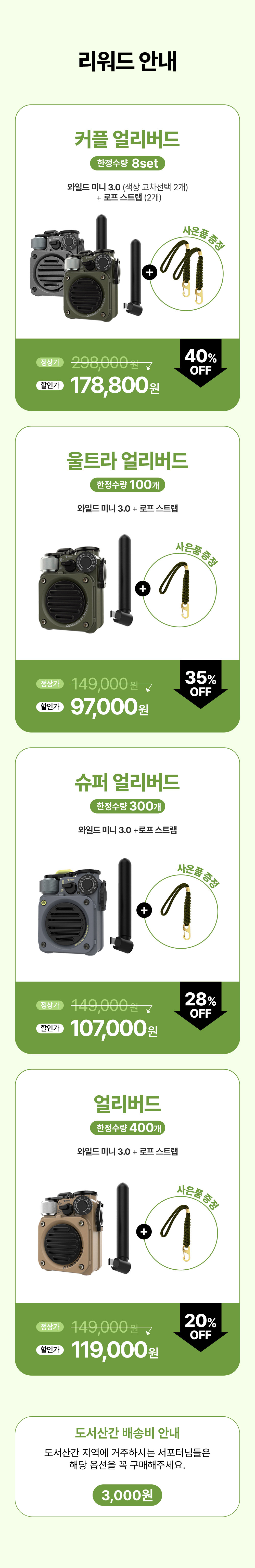 뮤젠 와일드미니는 1.0 버전부터 늘 와디즈 서포터분들께 가장 먼저 소개해드려 왔으며, 보내주신 뜨거운 관심과 사랑 덕분에 이번에 3.0 버전까지 발전할 수 있었습니다. 그래서 이번에도 변함없이, 와디즈에서 가장 먼저 새 버전을 선보이게 되었습니다.