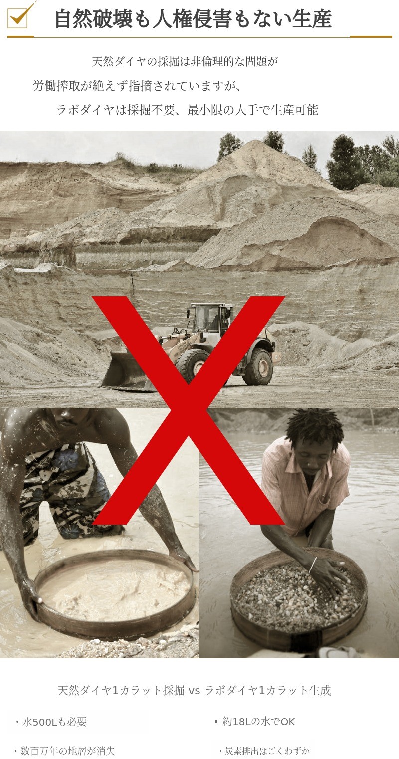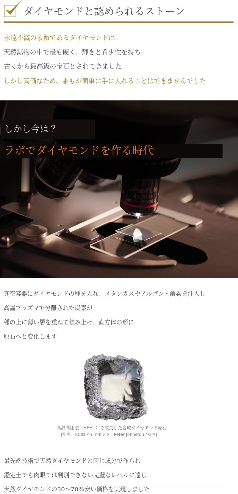 天然ダイヤモンドと同じ成分で実験室で培養されて作られた養殖ダイヤモンドです