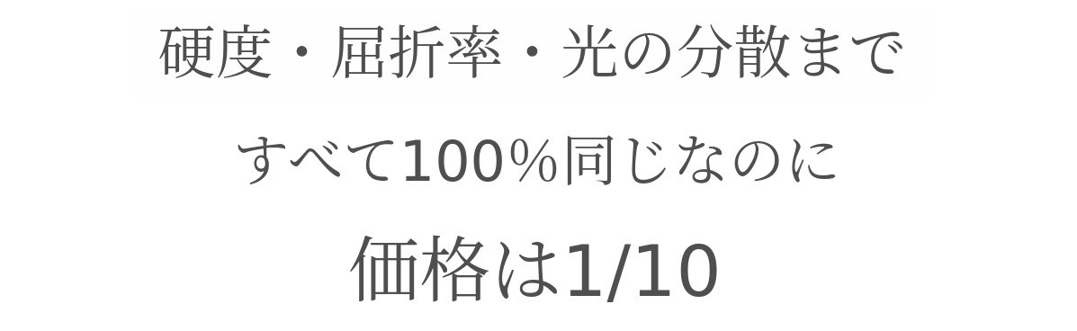 ダイヤモンドだけの美しい輝きと永遠不滅の硬さは真似できず、物足りなさが残りました