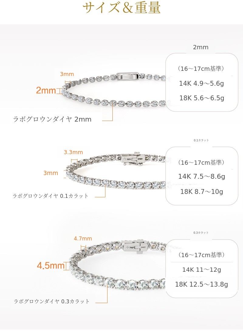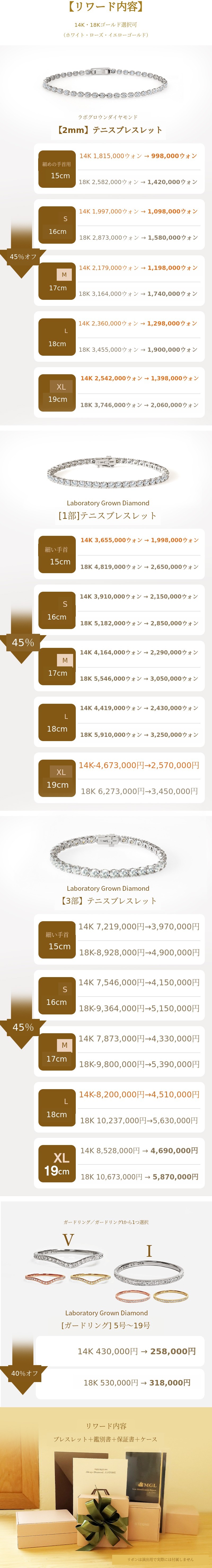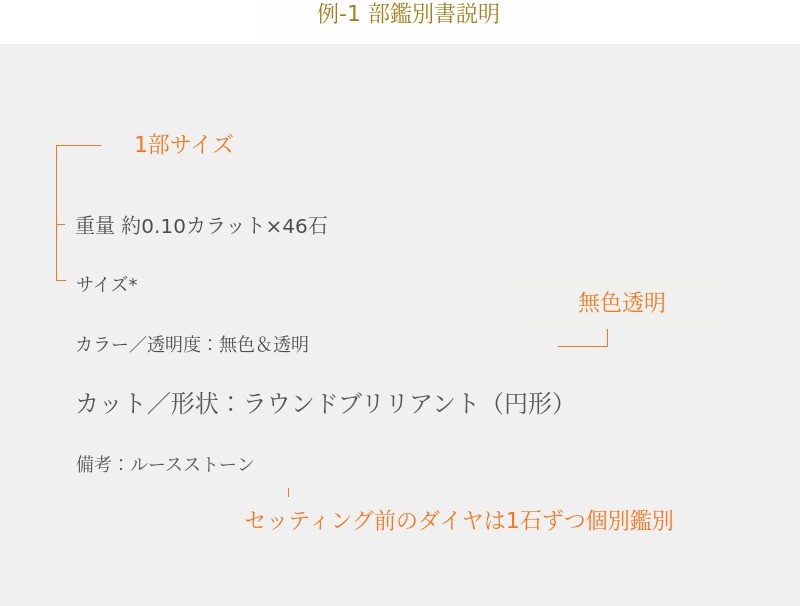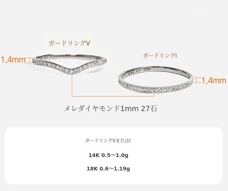 1) 標準規格に合った14K/18Kゴールドおよび明記されたダイヤモンドのみで製作します