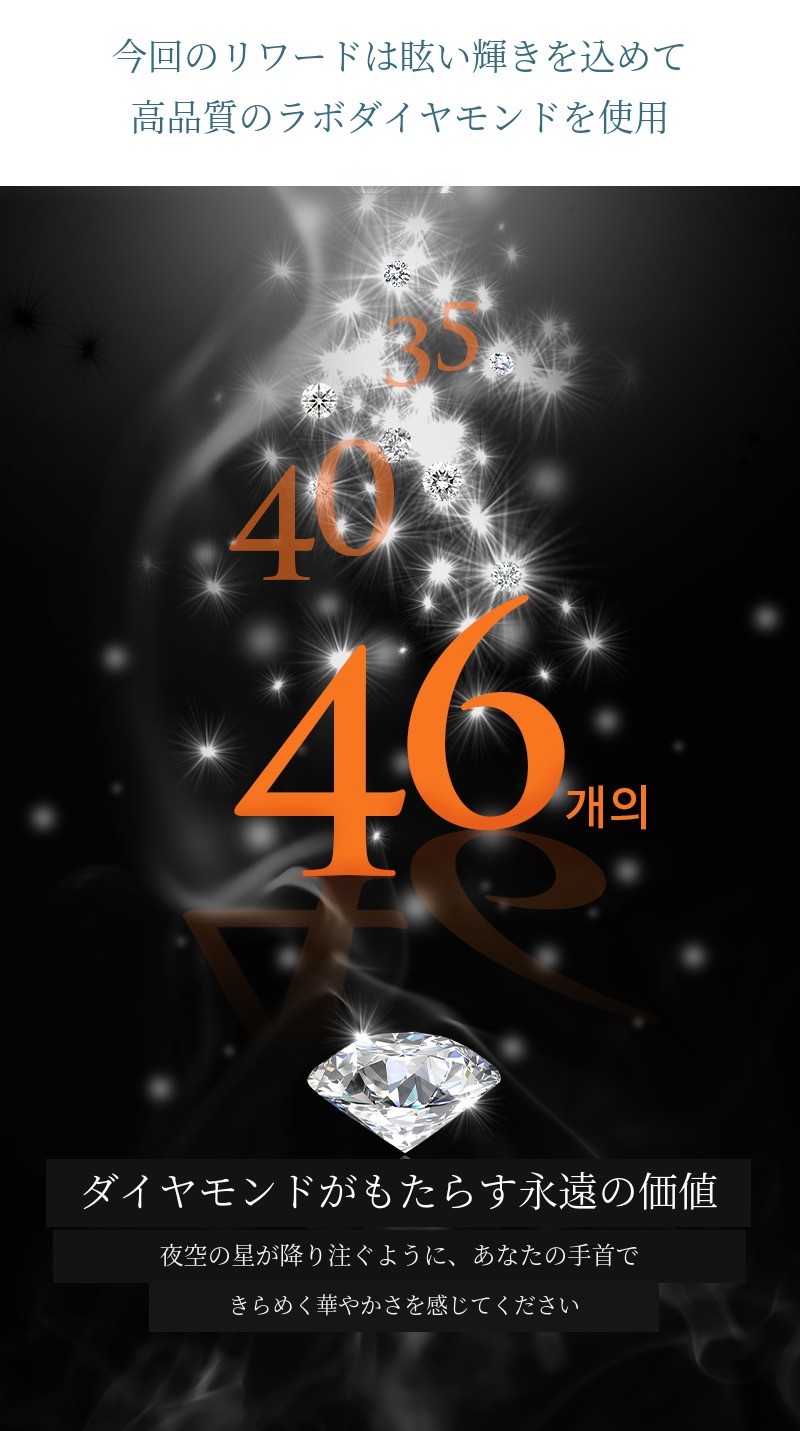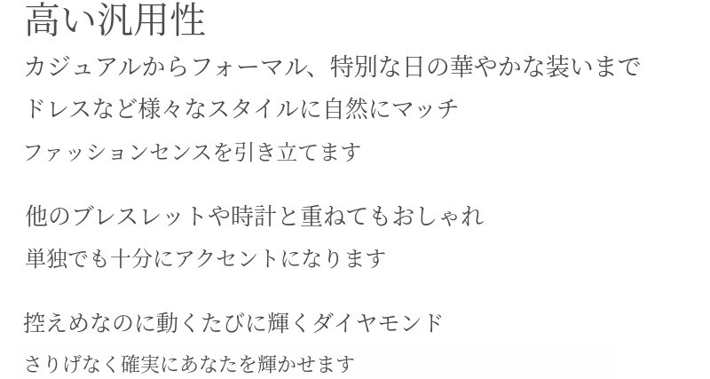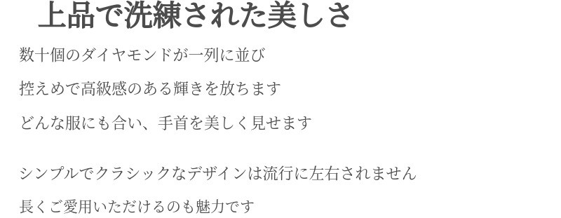 ダイヤモンドの間隔が均等に空いており、手首に快適にフィットします