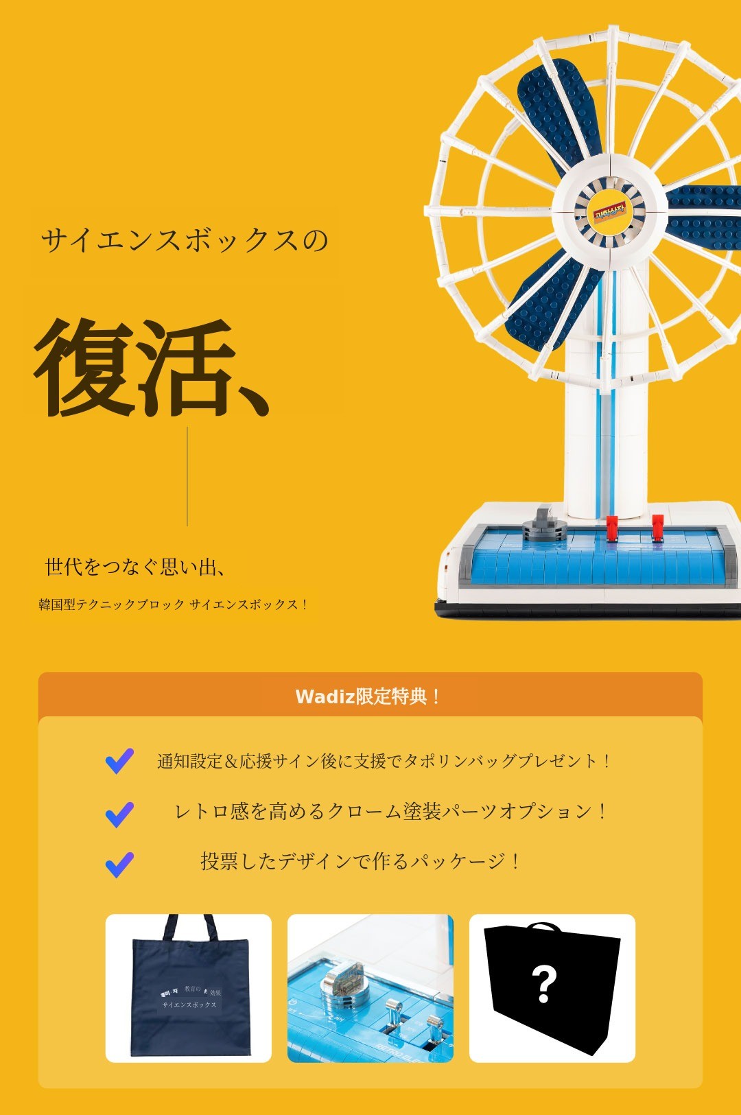 プロジェクト予算は製品生産および今後の科学キット新製品開発に活用される予定です。