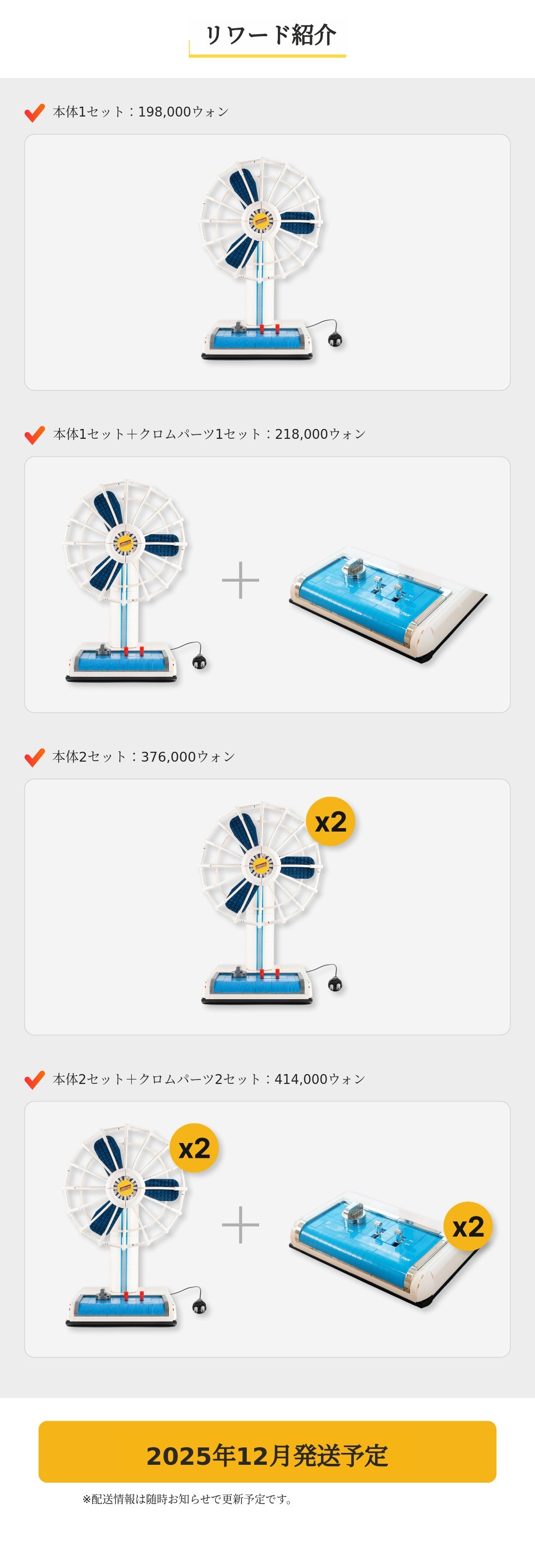 リワードはCJ大韓通運を通じて発送予定です(後日変更の可能性あり)
