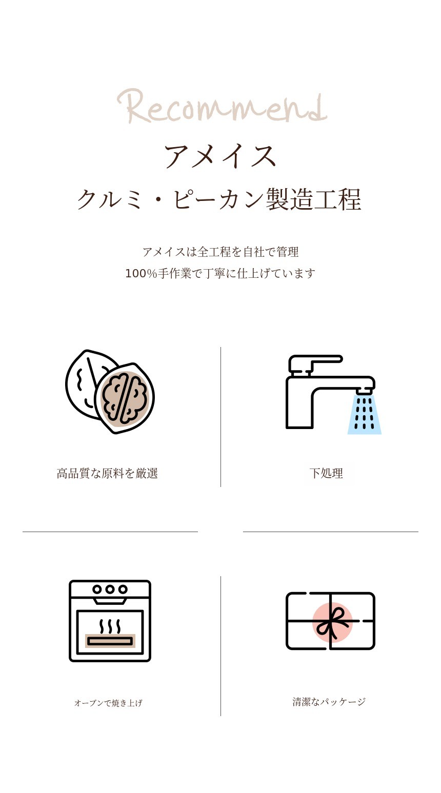 クルミ(アメリカ)、ピーカン(アメリカ)、水あめ(国産)、精製水、砂糖(国産)、米あめ(国産)、バター(ニュージーランド)、きな粉(国産)