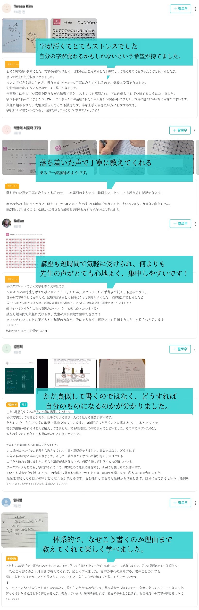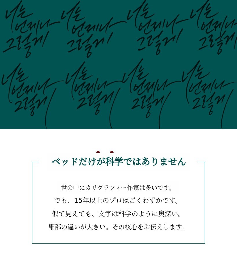 - 講座の要望が多いのですが、サッカーをしている二人の息子のスケジュールのために動くのが難しく、特に地方にお住まいの方は情熱があっても学ぶ機会が少ないため、今回の機会を通じてオンラインで文字を書く楽しさを分かち合えると思い、Wadizを選びました。