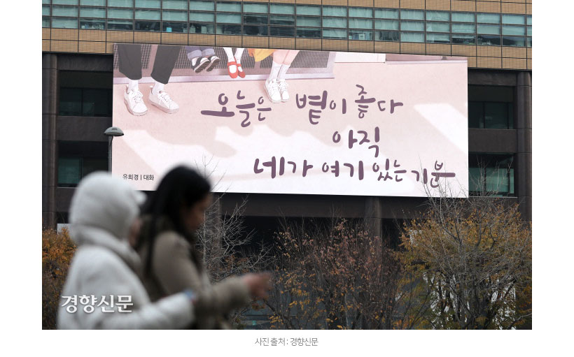 季節ごとに衣替えをしながら、街で私たちに慰めと希望を届けてくれる光化門の掲示板。2012年から参加し、今も美しい文章を温かい文字で表現しているカリグラフィー作家、ダジャラン少年と一緒に文字を学びながら癒される特別な時間を過ごしてみてください。