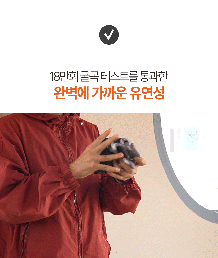 수십만 번의 굴곡 테스트 통과: 18만 회 굴곡 테스트를 통과한 유연하고 내구성 강한 소재로 만들어져, 접거나 구겨도 단선될 염려가 없습니다.