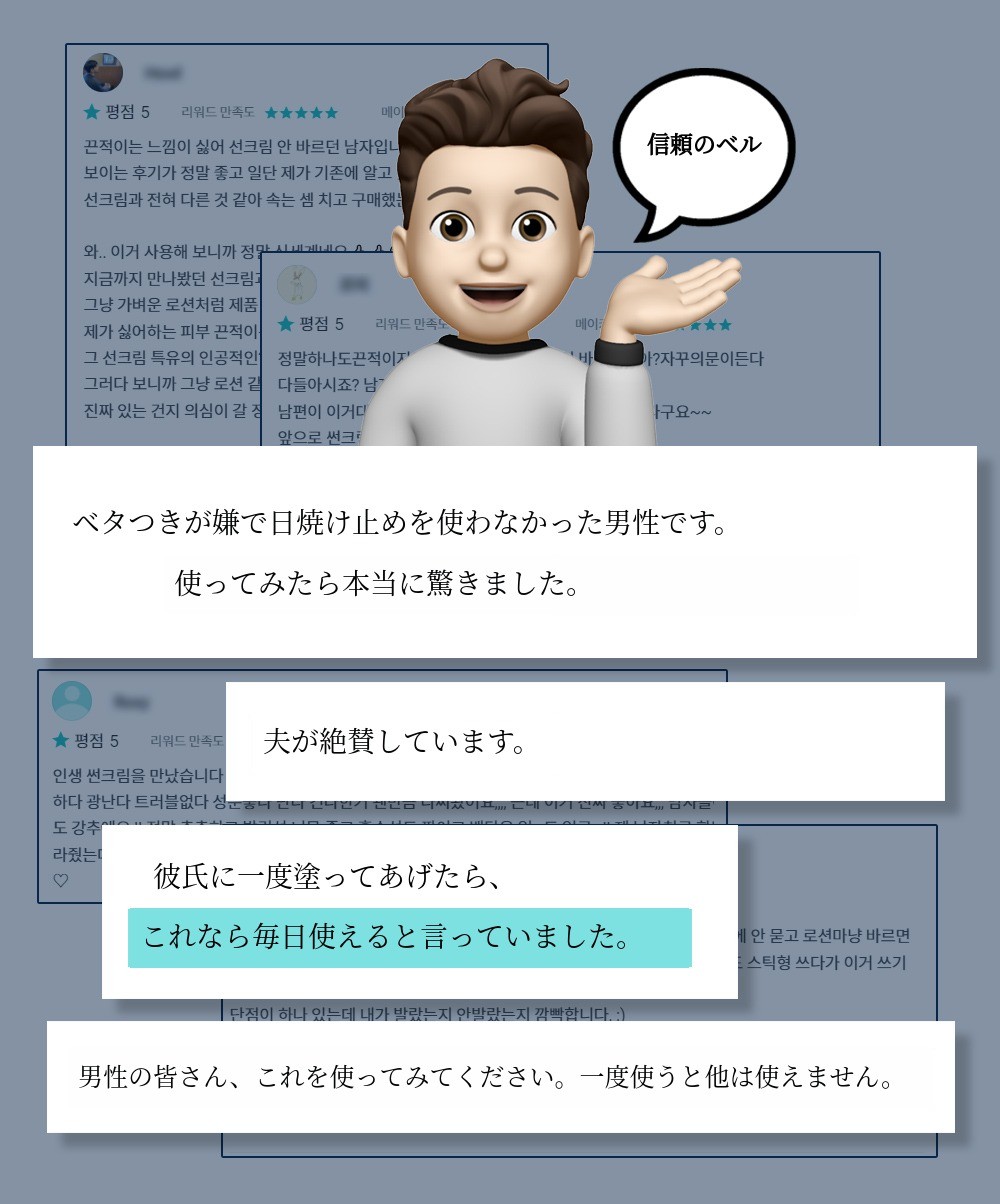 いつも日焼け止めを塗った後、すぐにトイレに行って手を洗った経験はありませんか? 本当にその状態では何も触りたくない気分。必ずこうしてベタつきや残留感が残らなければならないのかという悩みから製品開発を行い、こだわりと努力で作り上げました。ベラヴィーガンウォーターサンエッセンスを使って本当に軽くてさっぱりした塗り心地に驚きました。塗り心地はとても大事ですよね。
