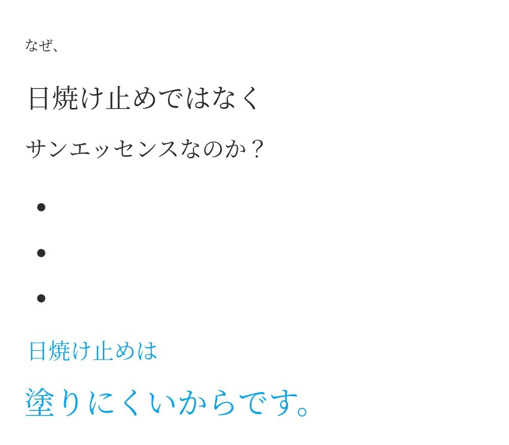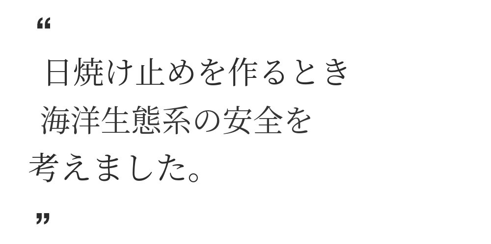 今まで数多くの日焼け止めを使ってきました。白浮きせず、ベタつかないと言われて使ってみましたが、満足した製品はなかったように思います。だから自分が満足できる製品を作ろうと決心しました。