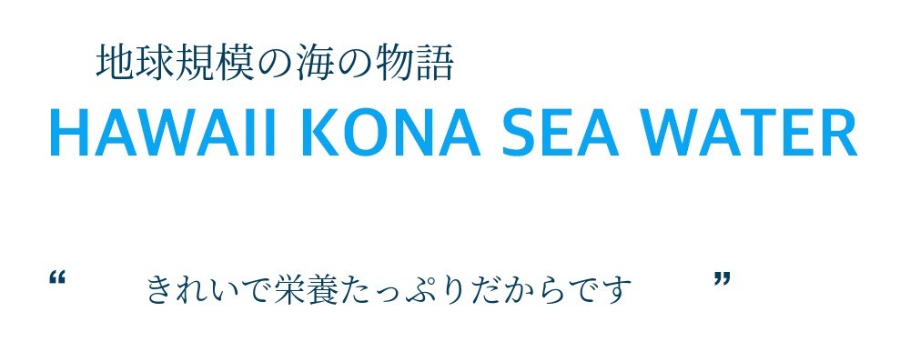 ハワイ島コナ沖で採水される海洋深層水は、ハワイ島から遠く離れたグリーンランド沖にその起源 を持っています。海水がグリーンランド周辺の氷河に出会うと、濃度が高く重い水となり、約4000メートルまで沈みます。それが約2000年という歳月を経て、大西洋からインド洋、太平洋沖にたどり着きます。これらは地球の自転作用や海底山脈にぶつかりながら湧き上がるのです。ハワイ島コナ沖の海は、海底から見ると約5000メートルの高さを持つ大山脈地帯であるため、2000年の熟成を終えた水が湧き上がるのに最適な地域なのです。