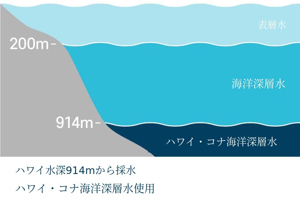 北大西洋グリーンランドからハワイの深層水になるまで約2000年かかり、この長い年月の間一度も大気中の空気と接触することがなく まさに「きれいで栄養豊富な水」と言えるでしょう。