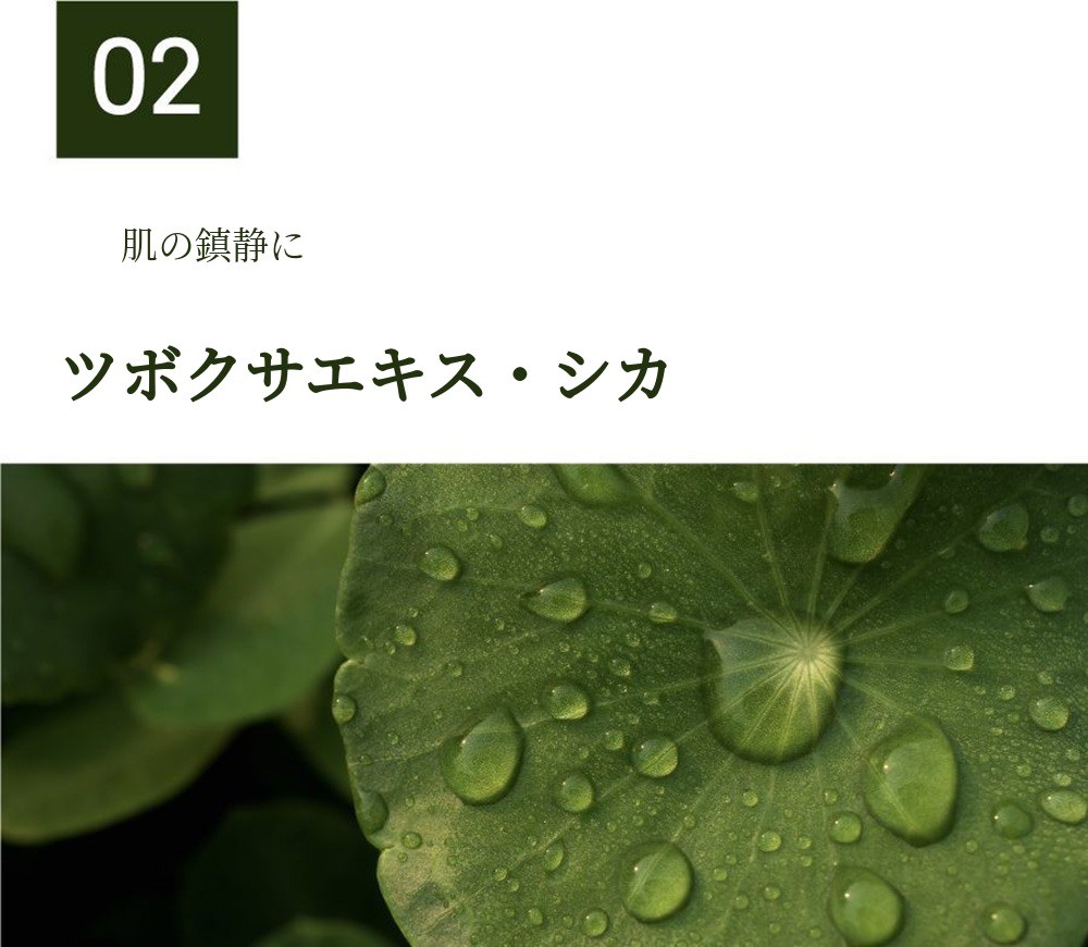 シカ。あまりにもよく聞くので、これは本当に説明がいらないですよね?肌の鎮静効果がとても優れているシカ, 紫外線で疲れた肌には鎮静効果が必要ですよね?そのため、ツボクサエキスも欠かさず配合しました。