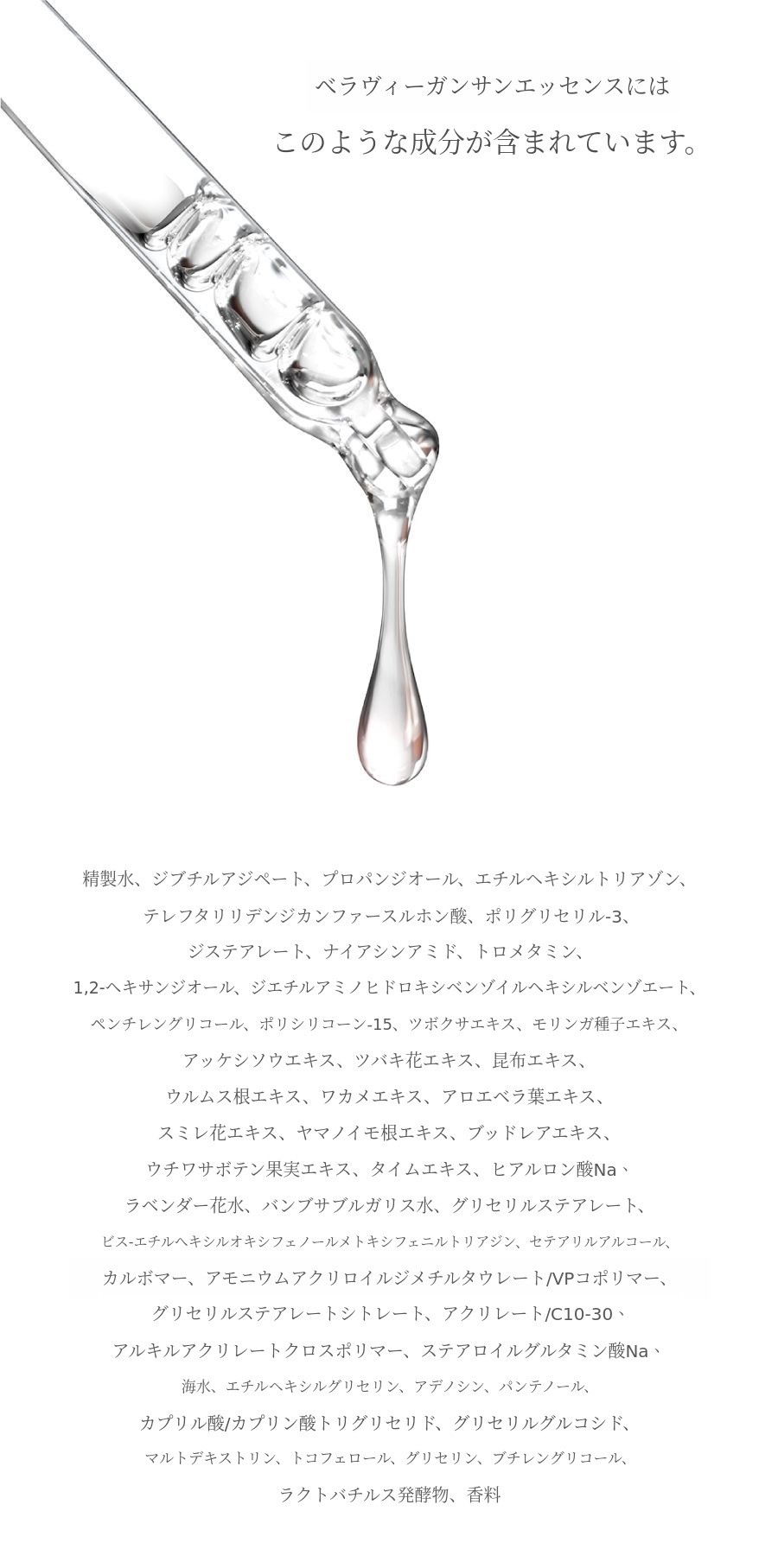 それでは詳しく最新のベラヴィーガンウォーターサンエッセンスを徹底解剖します!