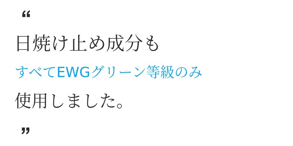ベラサンエッセンスは有機日焼け止めです。EWGグリーン等級の有機日焼け止め成分を使用しているため、安心してご使用いただけます。