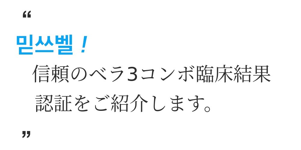 サポーターの皆様に製品についてより明確な情報をお伝えする必要があると考え、食品医薬品安全処の機能性報告が完了したフォーミュラで進行しました。その後、生産前に韓国コルマで同じフォーミュラを使い、もう一度外部臨床機関で臨床を受けて数値を確認し進行し、ベラでも独自に外部機関にもう一度依頼しました。合計3回の確認 を繰り返しました!