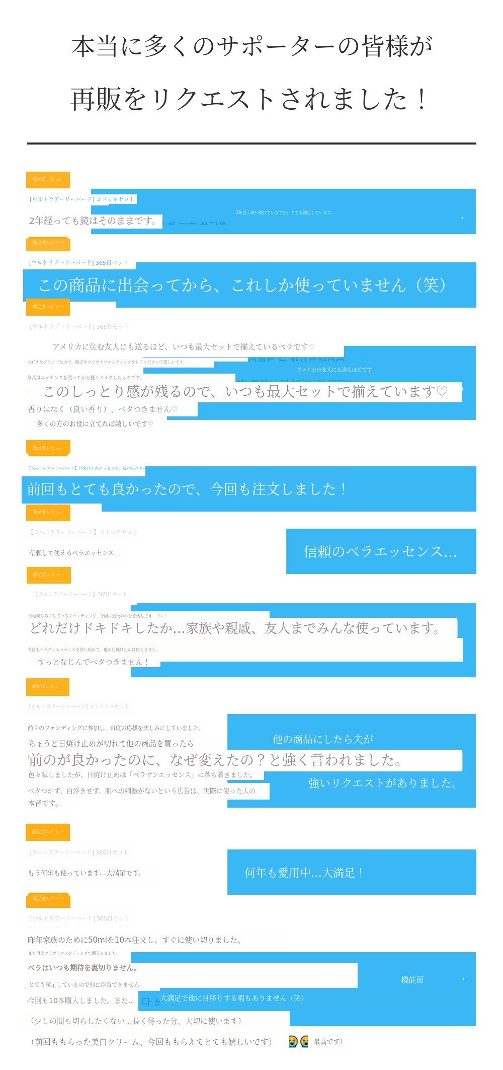 とてもご満足いただき、喜んでいただき、応援してくださりありがとうございます。ベラサンエッセンスをご使用いただき、健康的な肌と健康的な日常をお過ごしいただけることを願っております。 ベラは現状に満足せず、今も引き続き健康的な化粧品を作り続けています。サポーターの皆様の大切な選択が後悔のないブランドとなるよう、絶えず努力いたします。