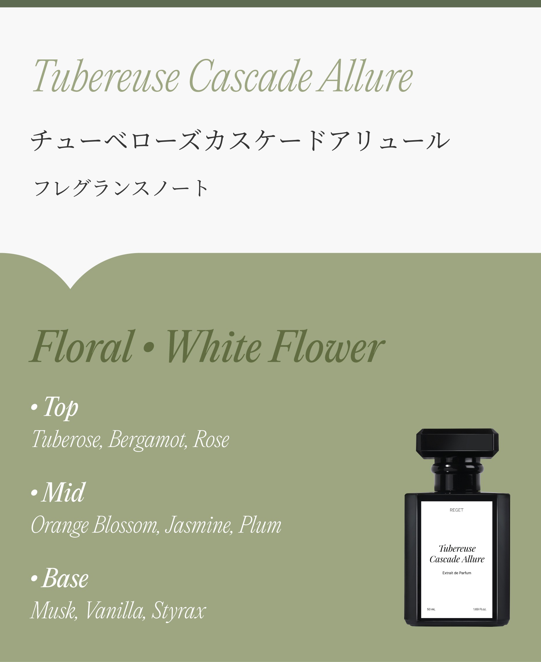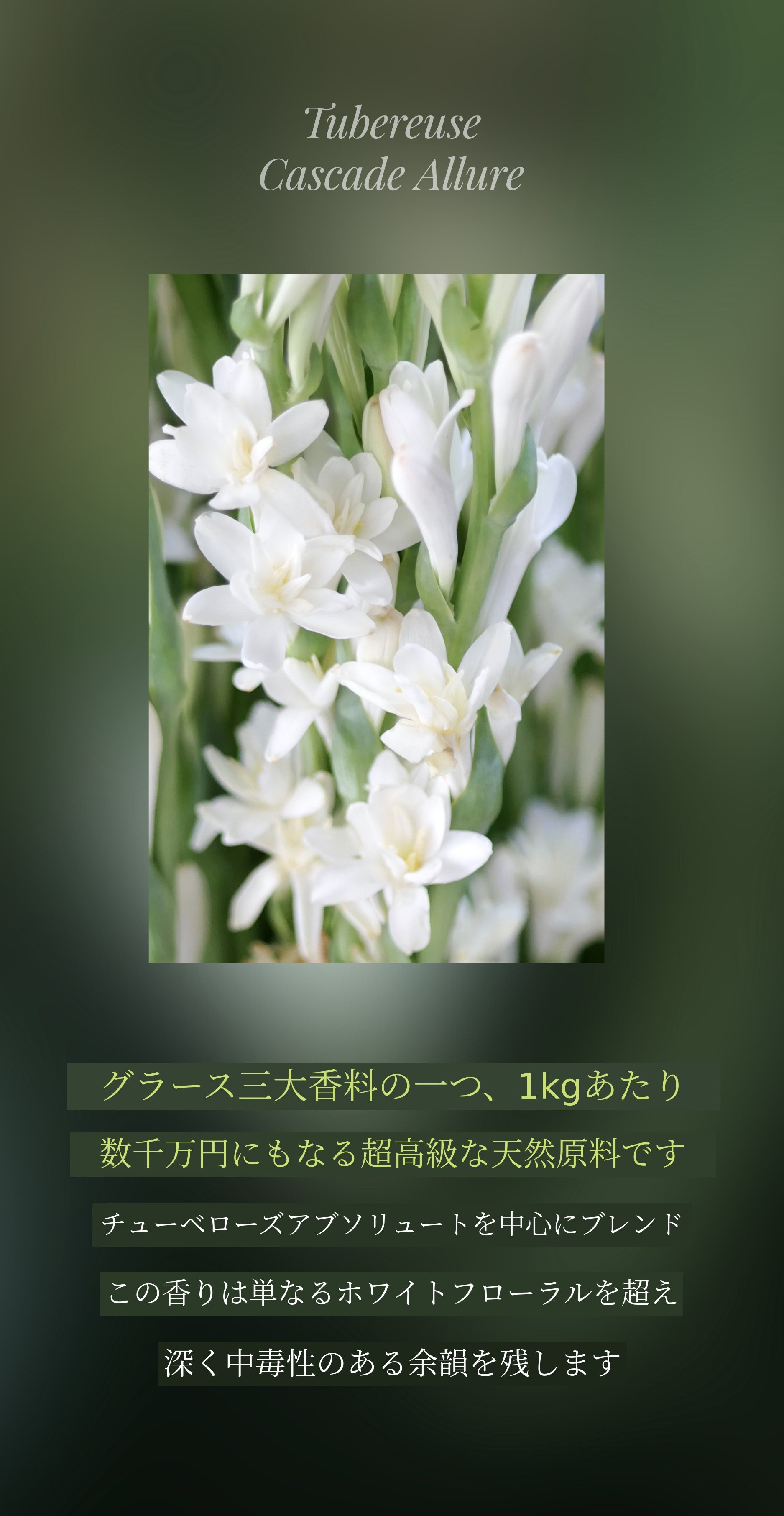 夜の庭に咲く官能、チューベローズ カスケード アリュールは純粋さの中に隠された誘惑を引き出します。