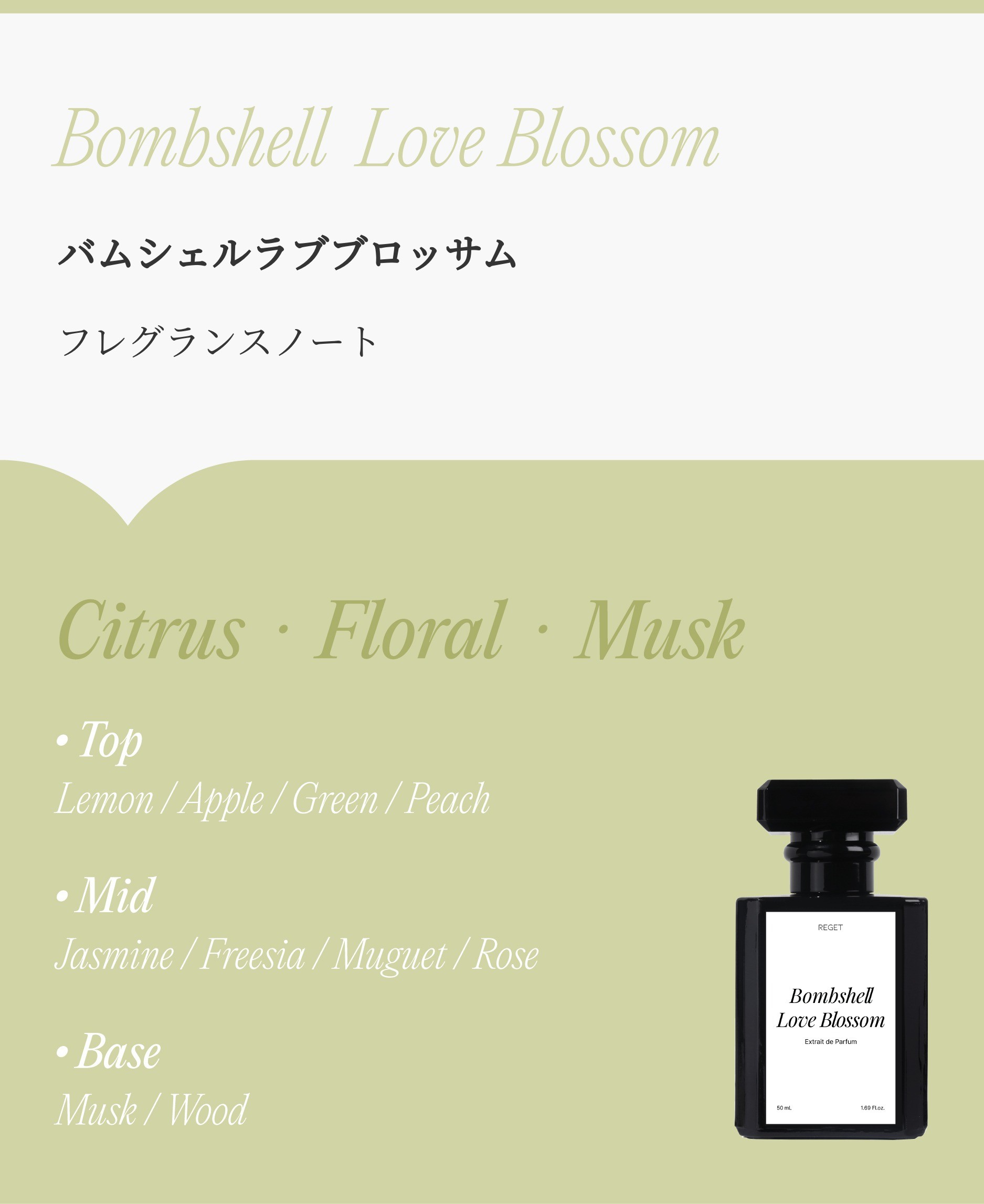 ミドルノート : JASMINE / FREESIA / MUGUET / ROSE