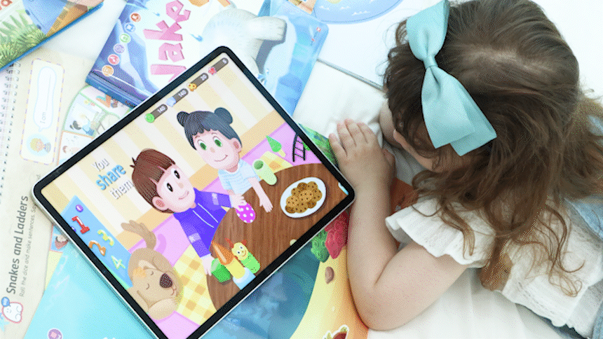 아바타 기반 가상 마을에서 아이가 직접 탐험하고 미션을 수행하며 영어를 ‘놀이’처럼 즐길 수 있습니다. 도서 구매자에게만 제공되는 단계별 전용 콘텐츠도 포함되어 있습니다.