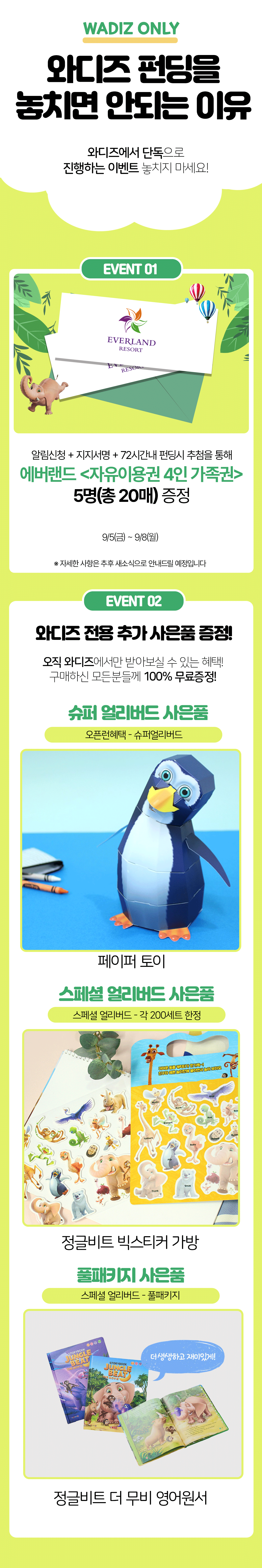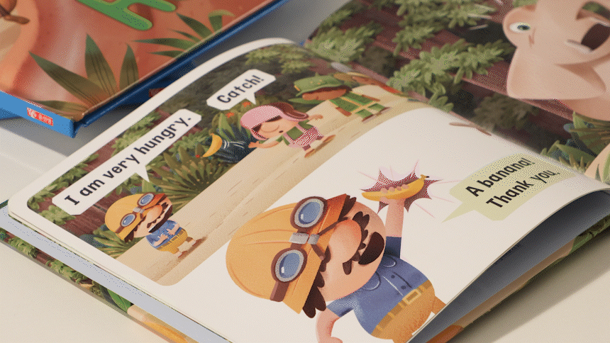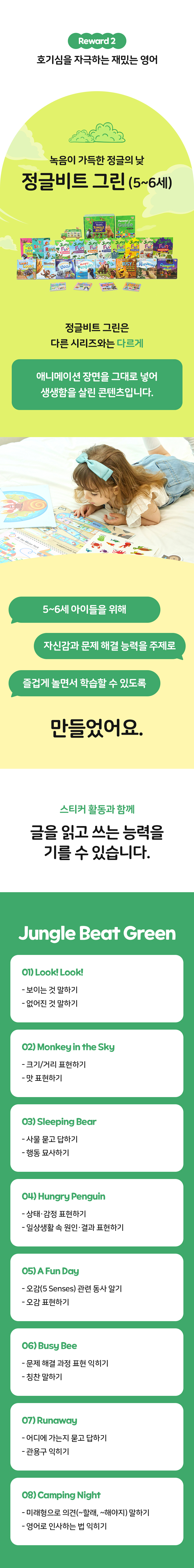 정글비트 애니메이션은 대사가 없는 슬랩스틱 코미디지만, 윤선생 정글비트 영어 도서는 캐릭터들이 영어로 실제 대화를 주고받으며 스토리를 이끌어갑니다. 이를 통해 아이들은 문맥 속 영어 표현을 자연스럽게 익히고, 몰입도 높은 학습을 경험할 수 있습니다.