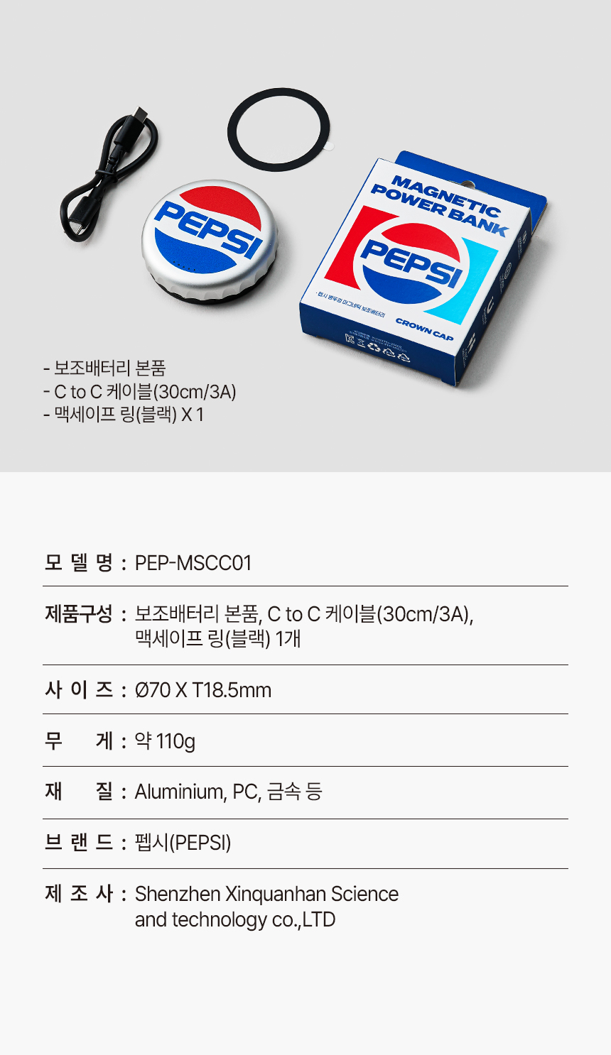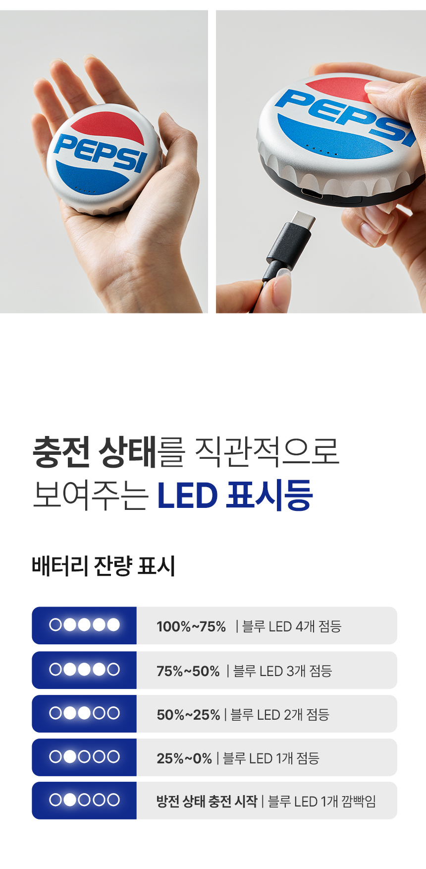 펩시 병뚜껑 마그네틱 보조 배터리 기본 정보