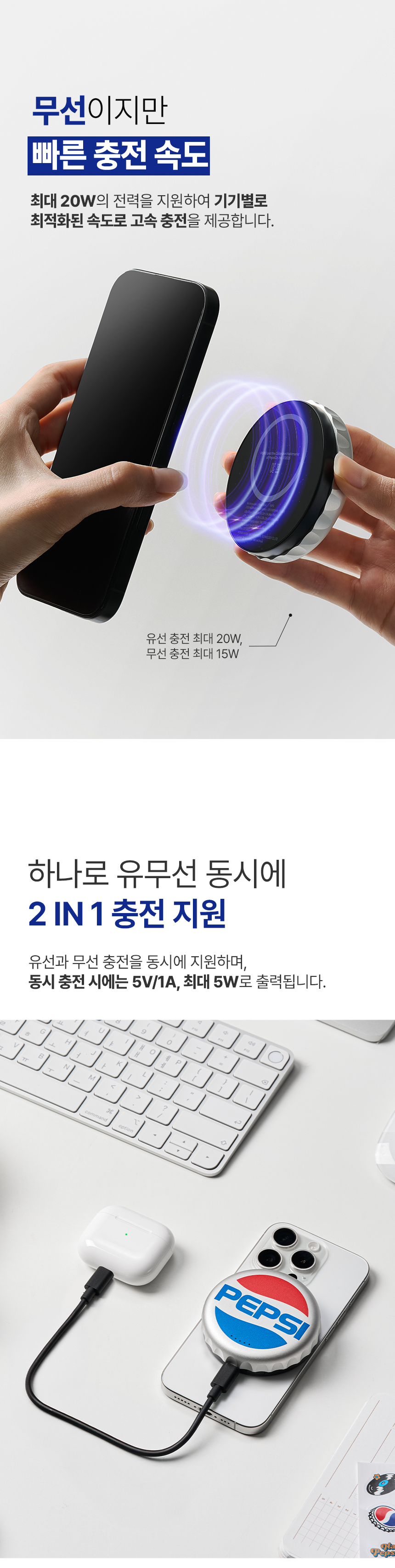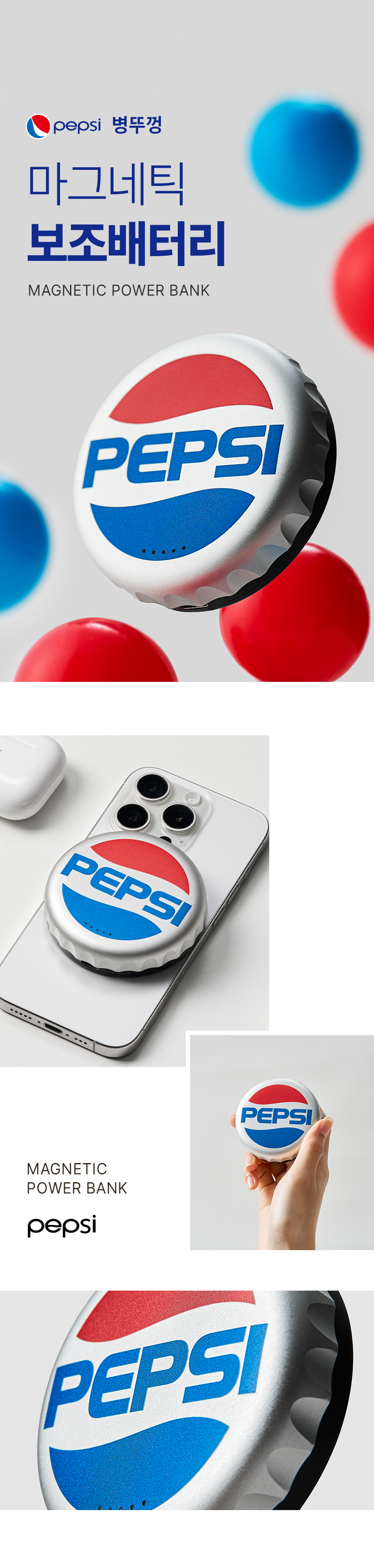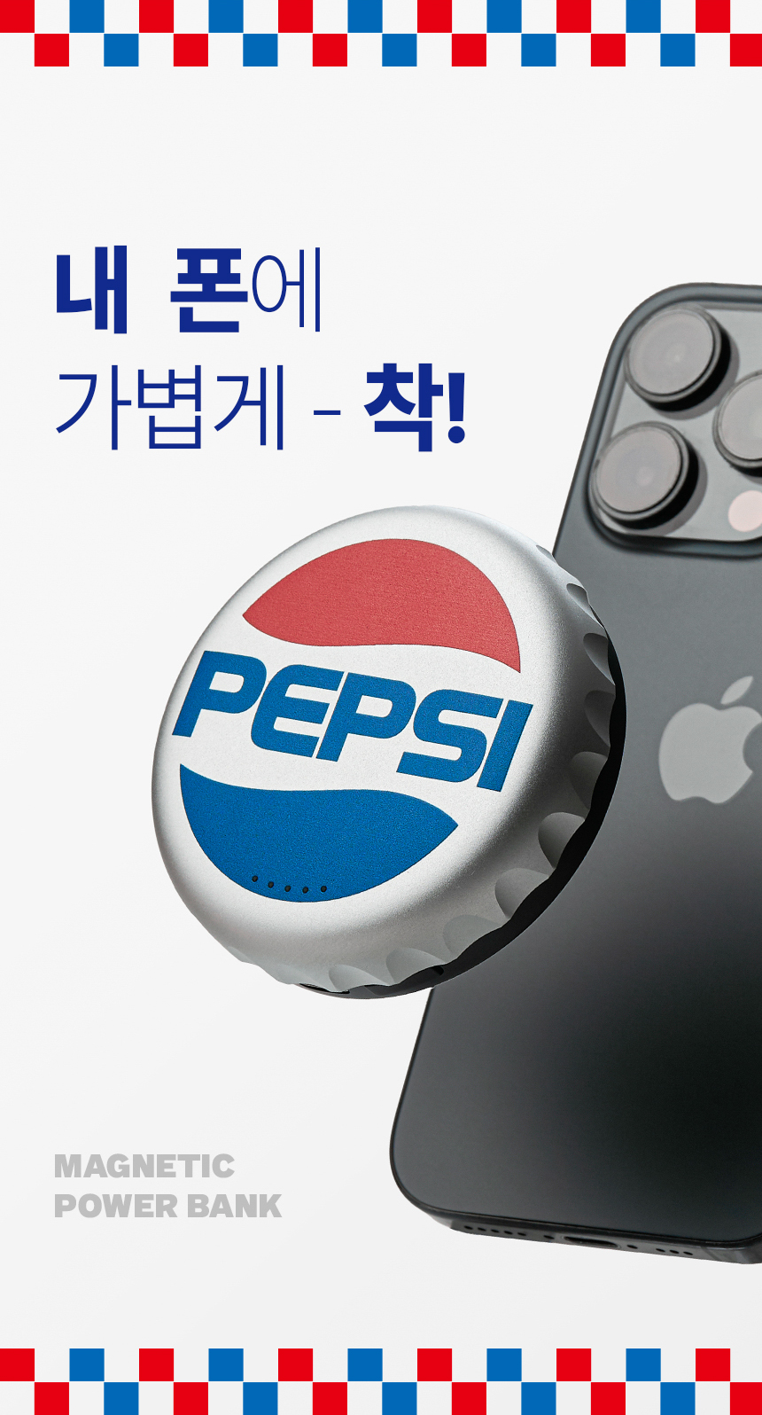 그래서 우리는 펩시의 쿨한 감성을 입힌 맥세이프 무선 보조배터리를 만들었습니다.