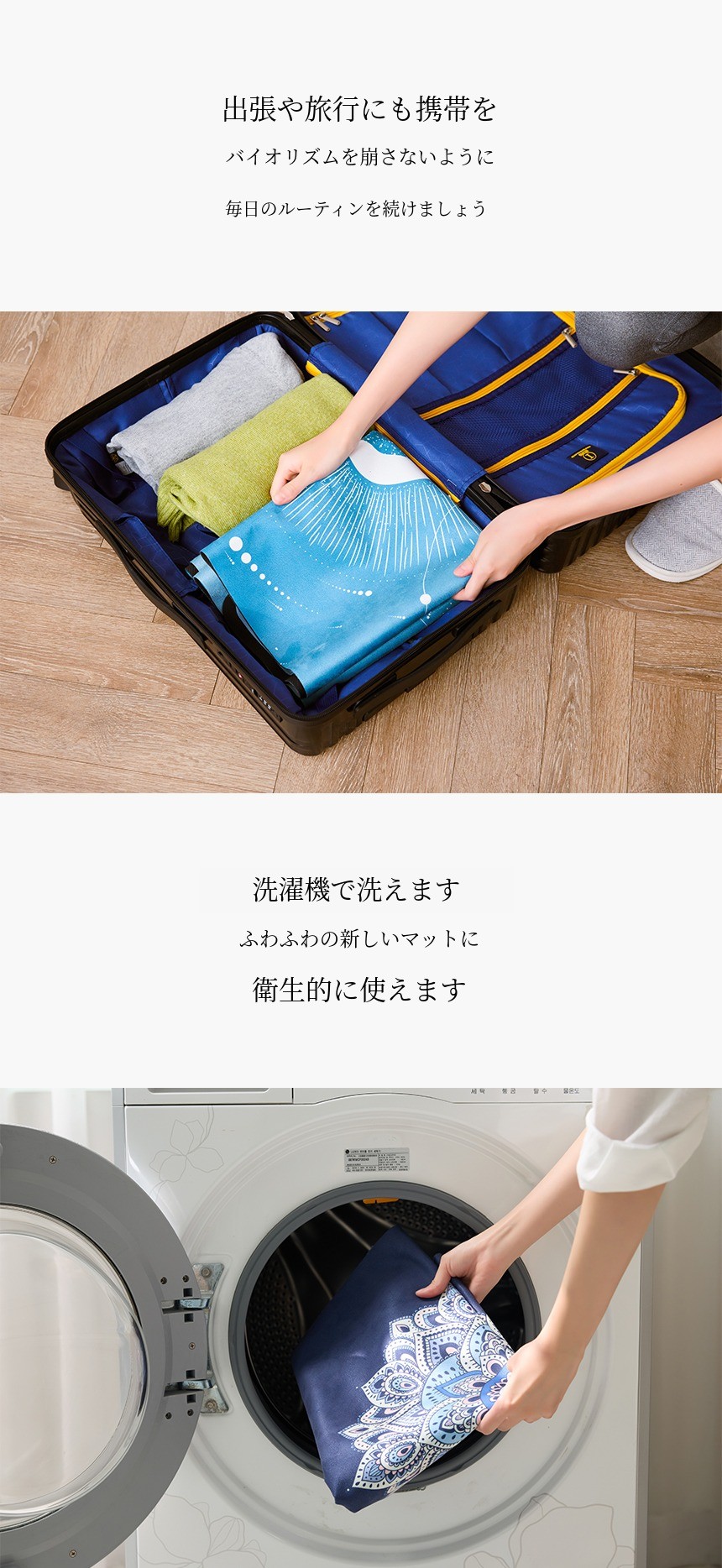 そしてヨガスートラの洗濯可能で携帯に最適な1mmヨガマットをお披露目しようと扉を叩きました。